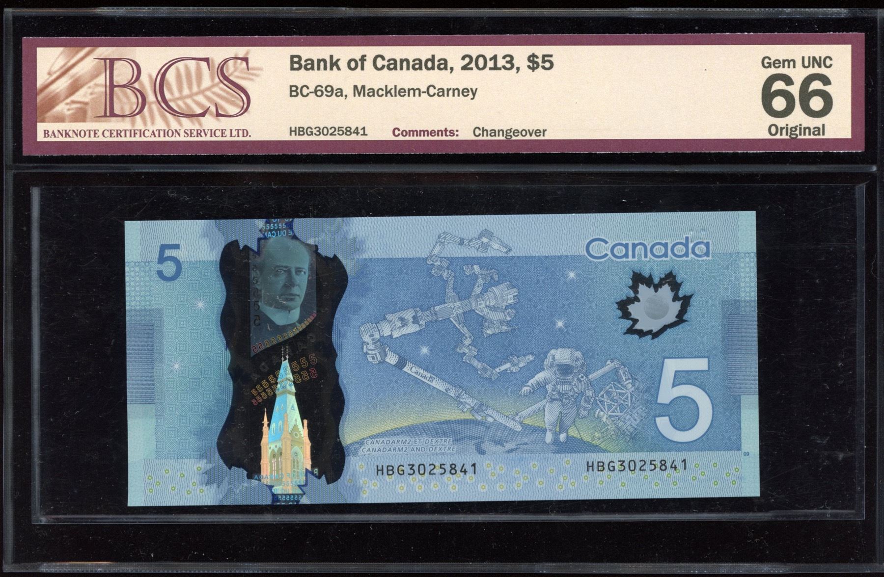 BC-69a. Changeover Macklem - Carney Signatures. BCS Gem Unc. 66 EPQ. S/N:HBG3025841.
