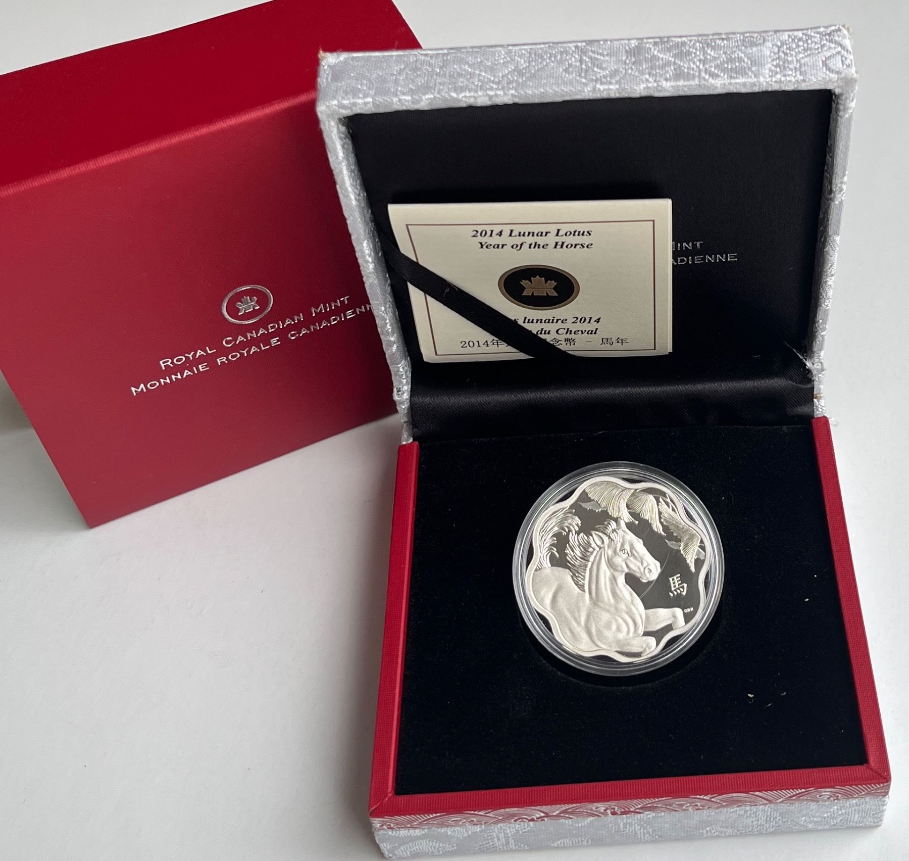 2014 Canada $15 Lunar Lotus Year of the Horse Fine Silver (No Tax), Mintage 28,888 with case, Box, and COA. RCM #109607