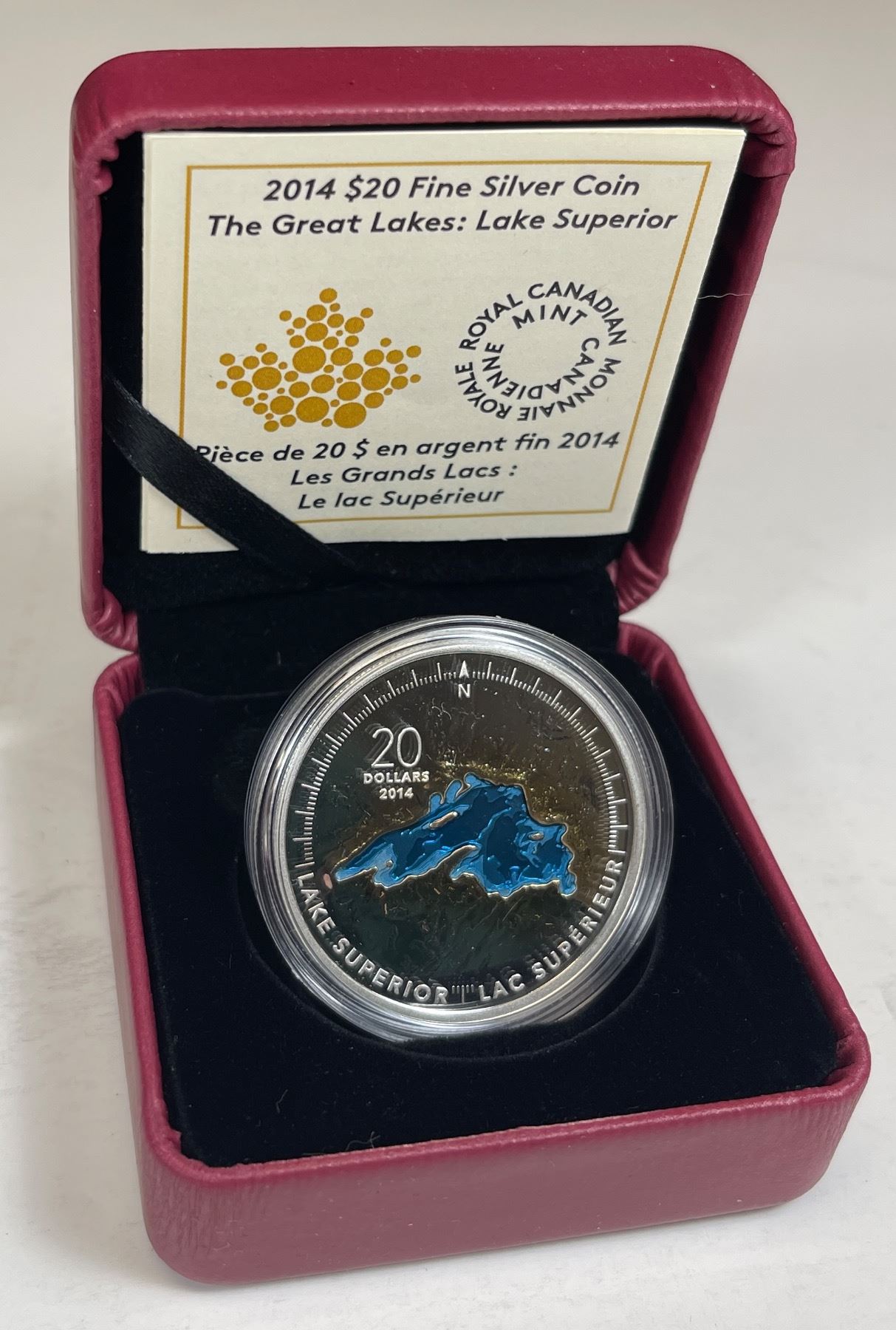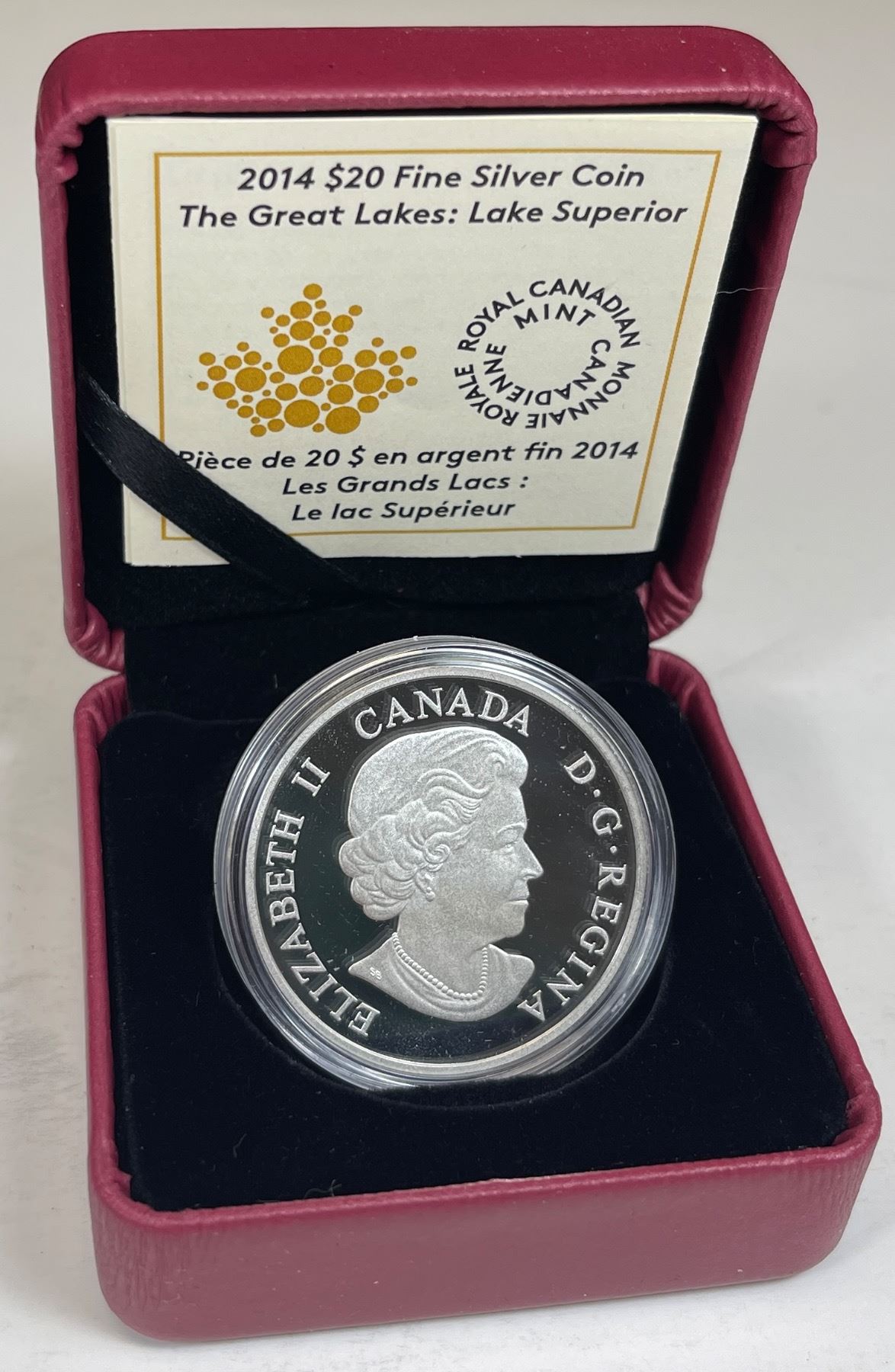 2014 Canada $20 The Great Lakes: Lake Superior (#1) Silver (No Tax) - 32.39 g - Mintage 10,000 With Box, and COA