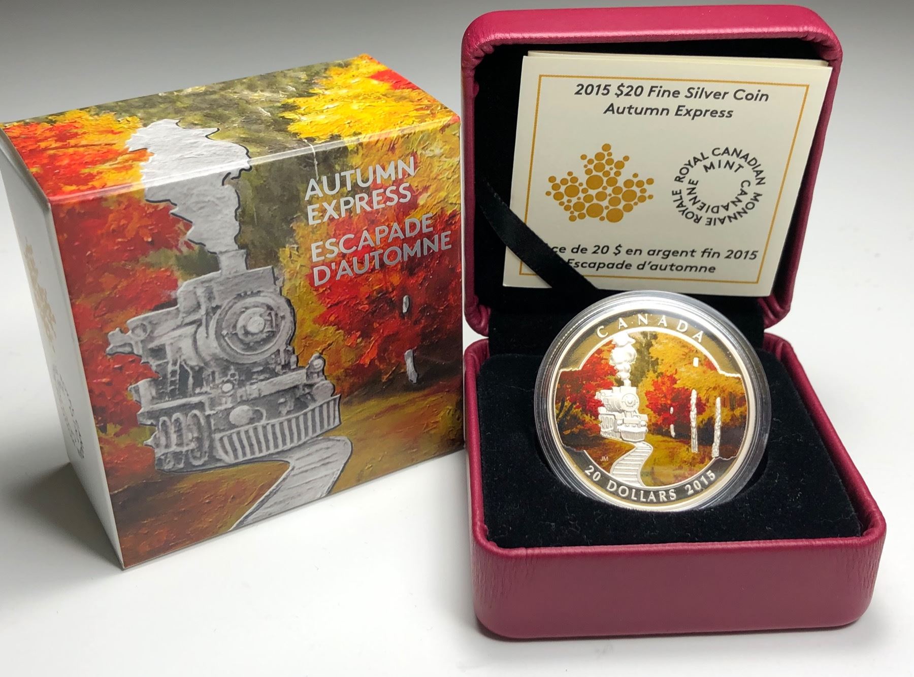 1 oz. Fine Silver Coloured Coin – Autumn Express – Mintage: 7,500 (2015) - With Box, sleeve and COA - RCM 143187 Issue Price $99.95