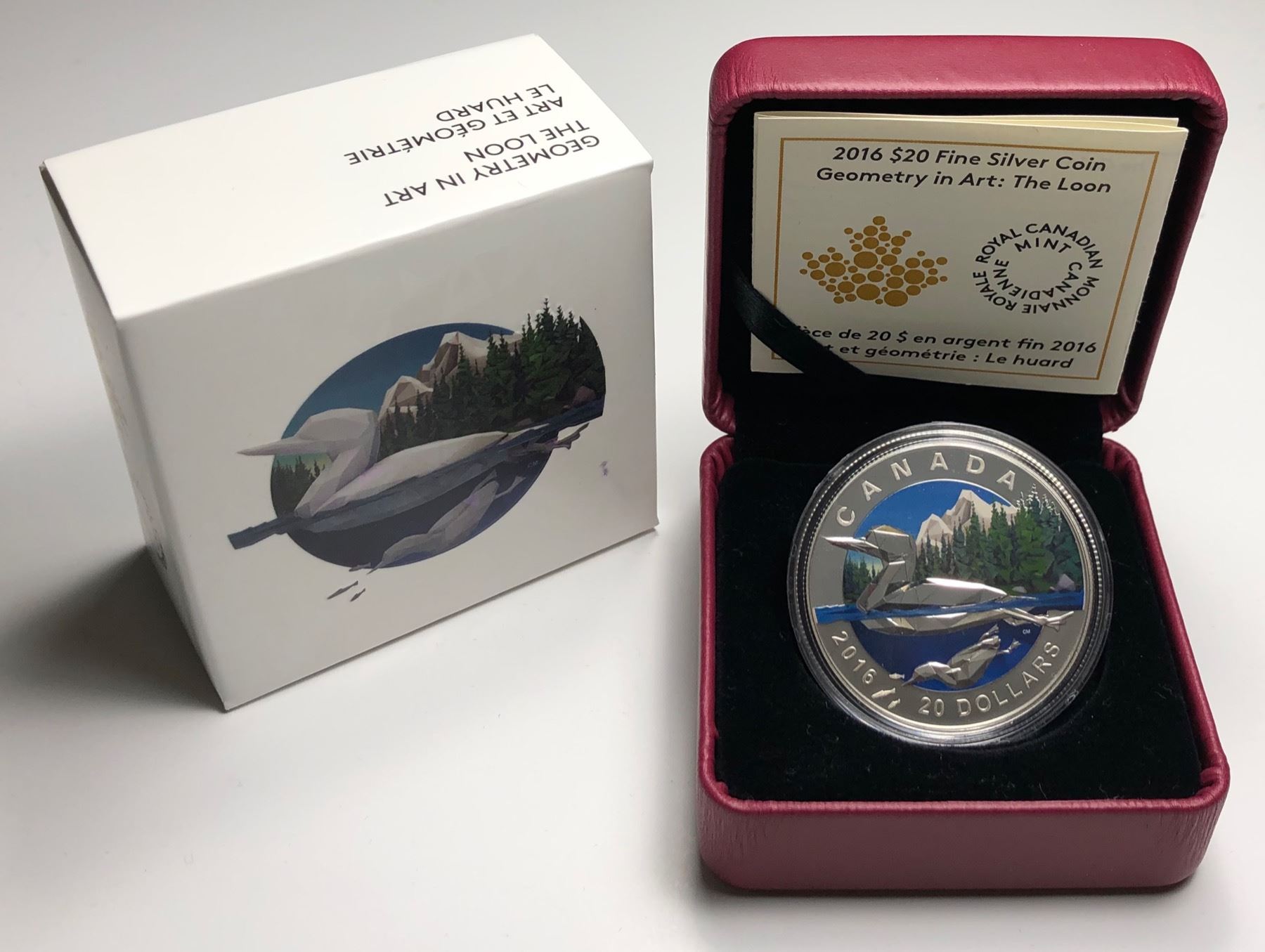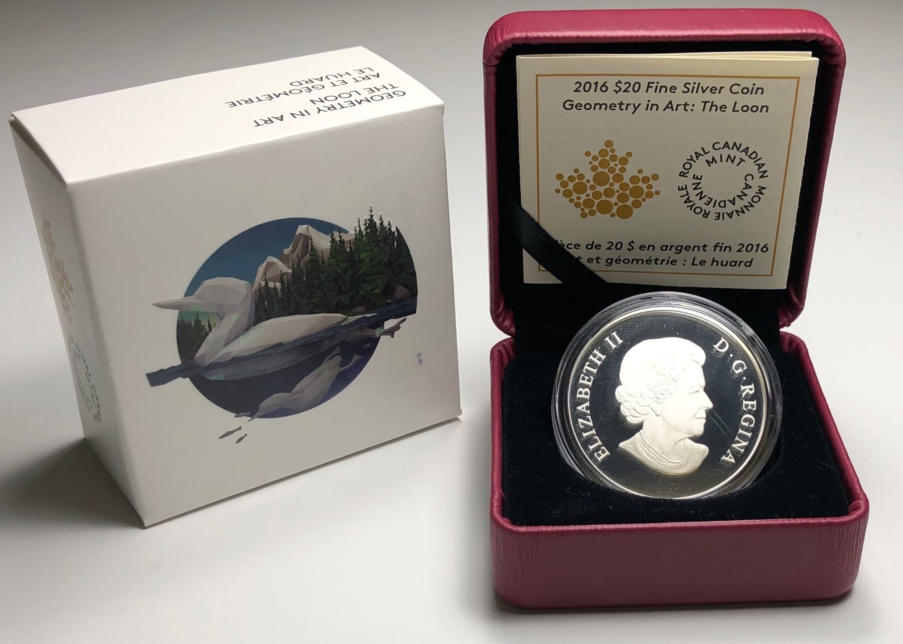 1 oz. Pure Silver Coin – Geometry in Art: The Loon – Mintage: 7,500 (2016) - With Box, sleeve and COA - RCM 18871 Issue Price $99.95