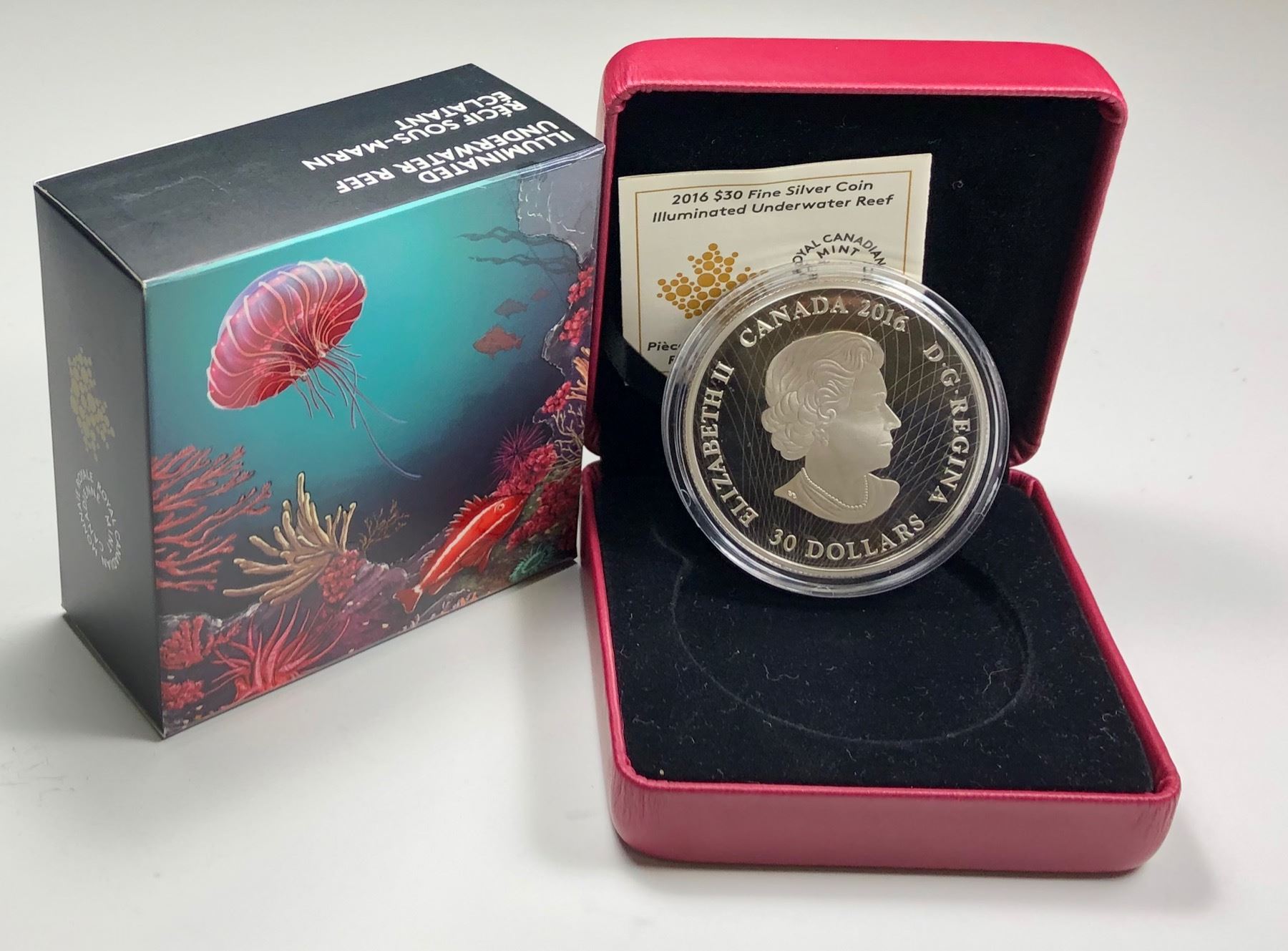 2 oz. Pure Silver Glow-in-the-Dark Coin – Illuminated Coral Reef – Mintage: 4,000 (2016) - With Box, sleeve and COA - RCM 154236 Issue Price $189.95