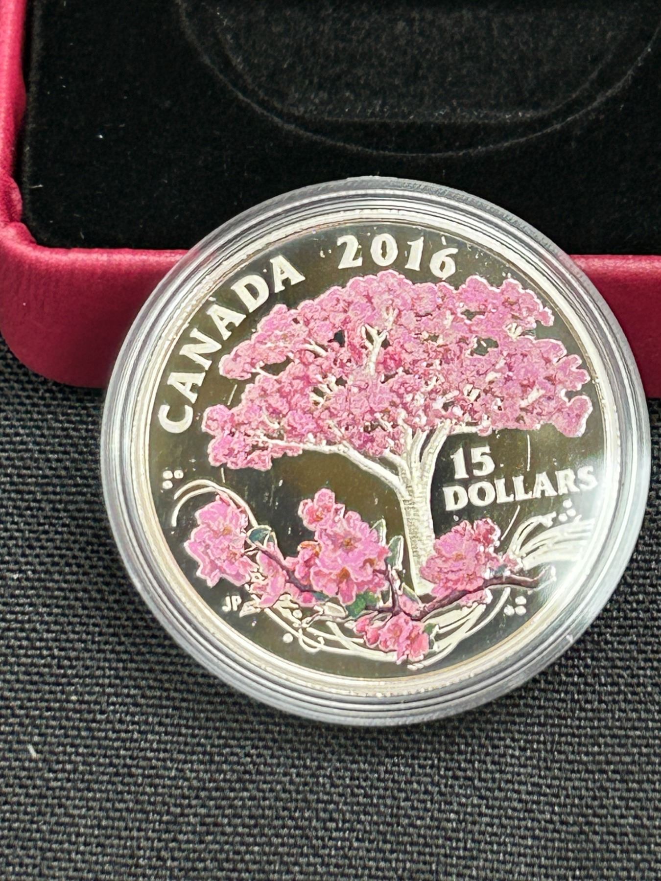 2016 Canada $15 Cherry Blossoms Fine Silver Coin (TAX Exempt)