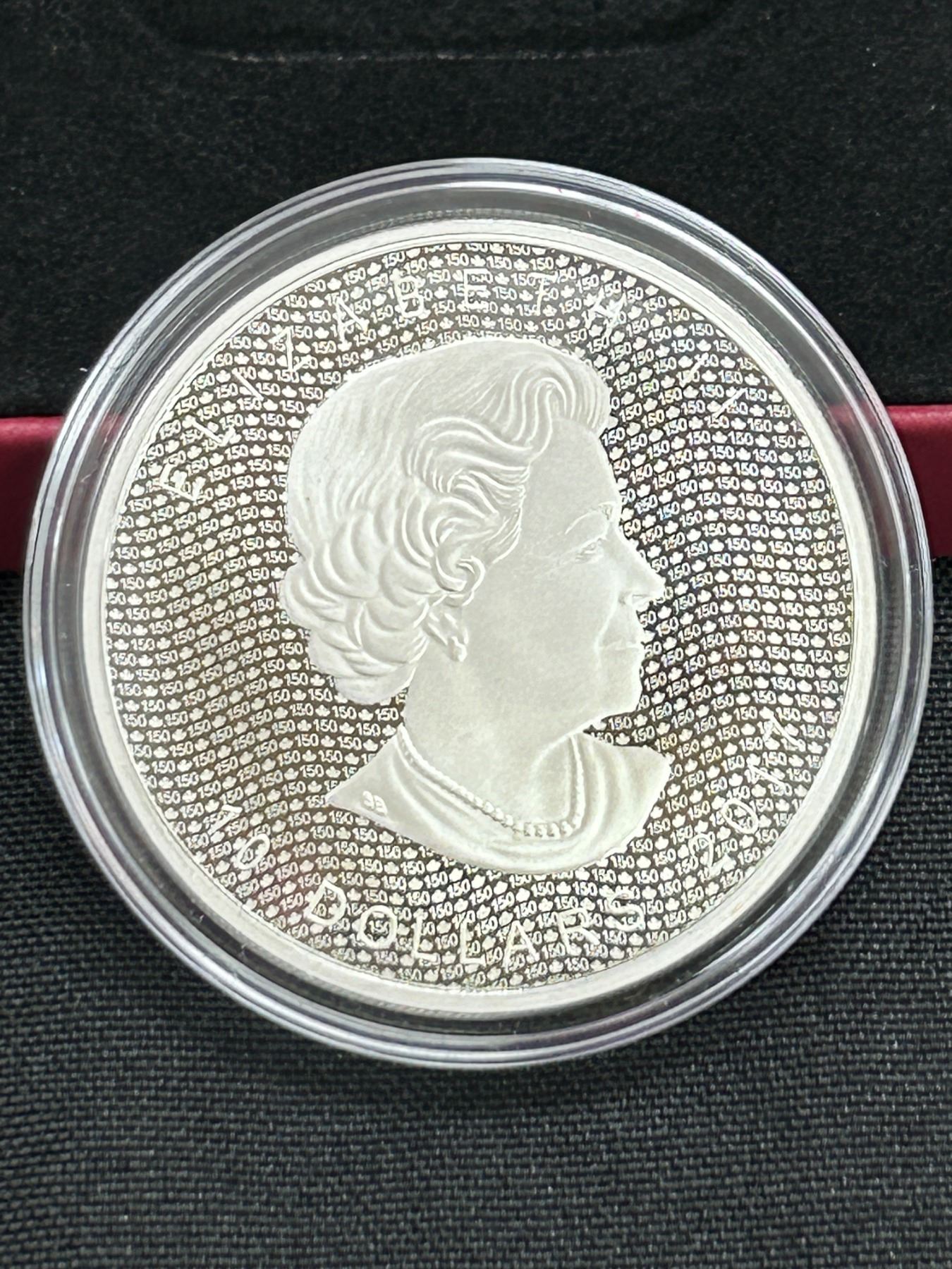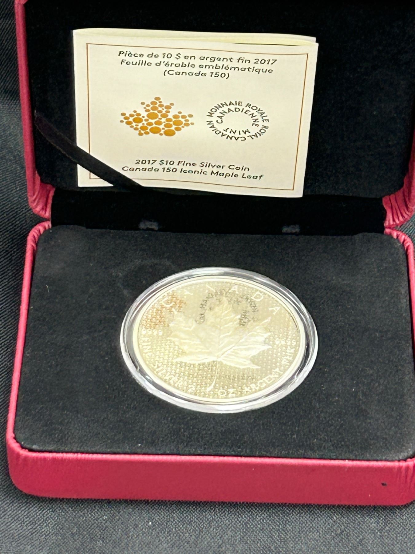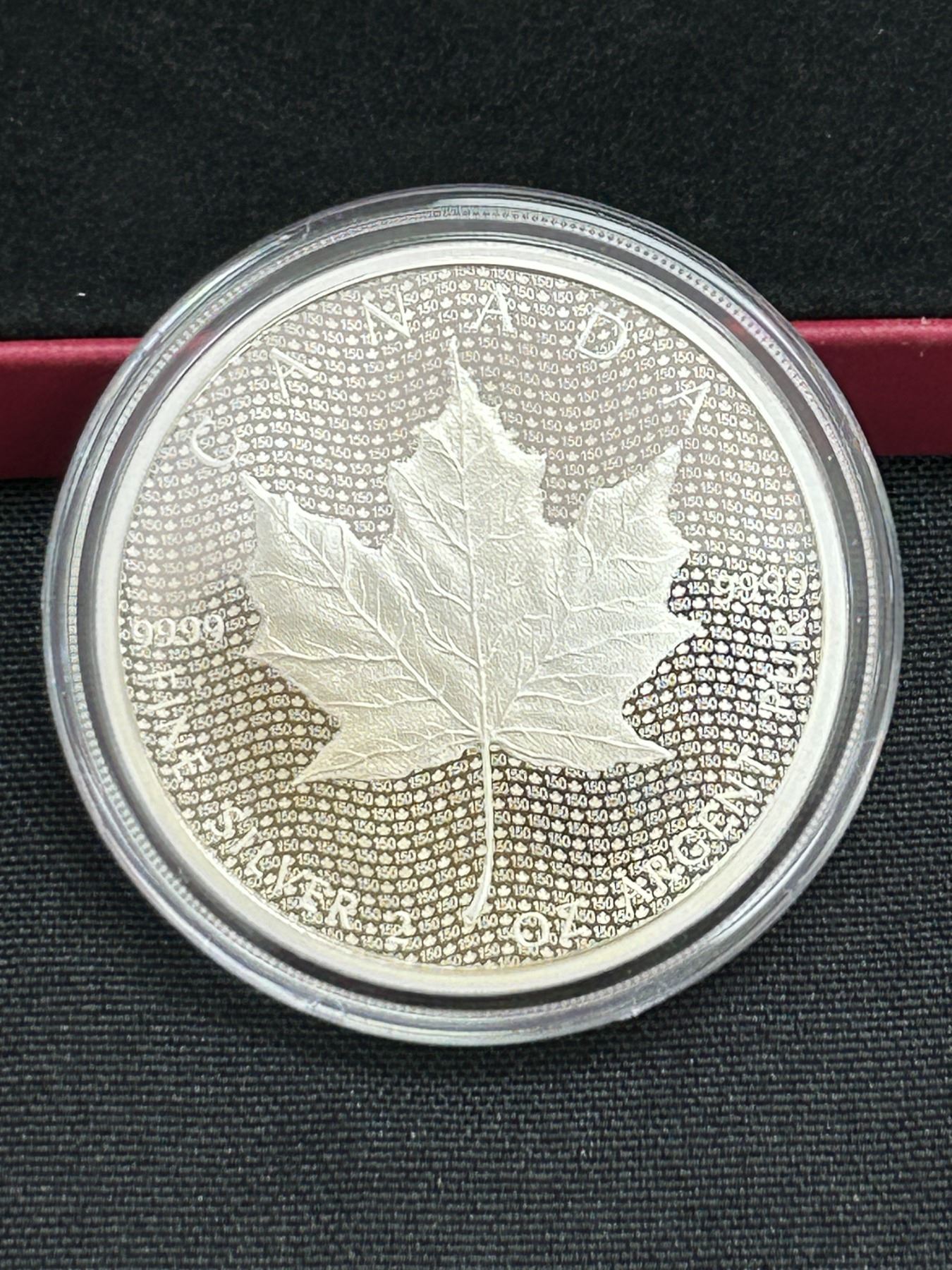 Item Number: 159189. Composition: 99.99% pure silver. Weight: 62.69g. Diameter: 50mm.Edge: Serrated. Finish: Proof. Maroon clamshell with a black beauty box