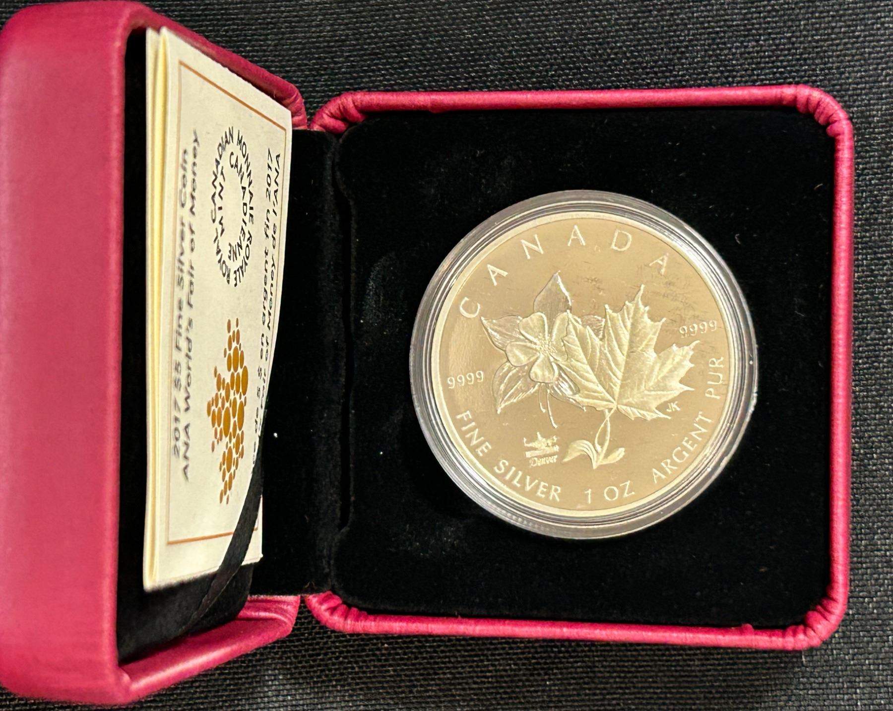 Item Number: 162243. Composition: 99.99% pure Silver. Mintage: 6,000. Weight (g): 31.39. Diameter (mm): 38. Finish: Proof. Celebrate the 2017 ANA World's Fair of Money, this special issue pays tribute to the host city of Denver, by pairing Colorado's state flower.