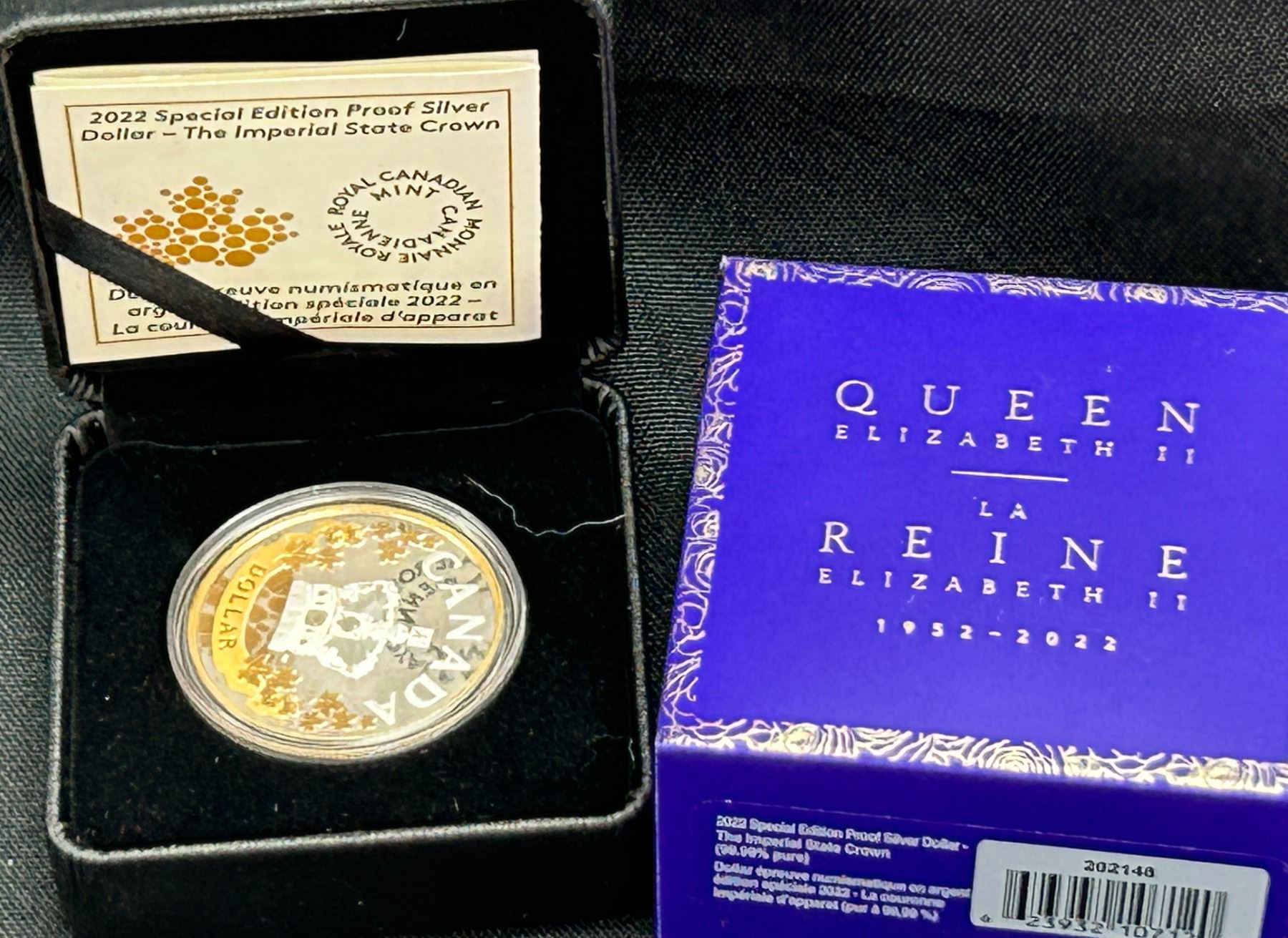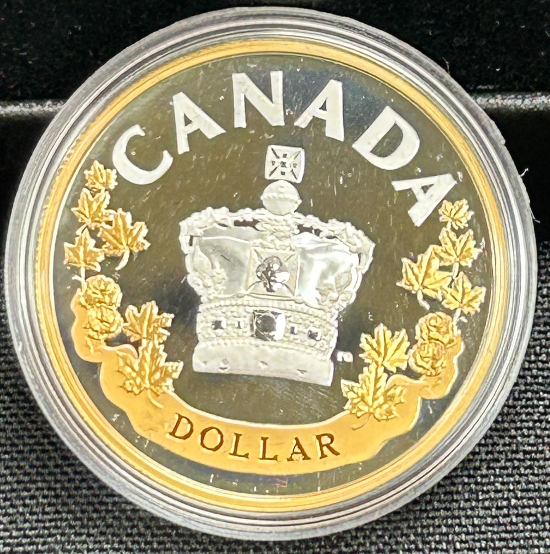 Item Number: 202148. Composition: 99.99% pure silver with selective gold plating. Weight: 23.17 g. Diameter: 36.07. Finish: Proof. Artist: François Guitard. The coin is encapsulated and presented in a Royal Canadian Mint-branded clamshell with a graphic beauty box.