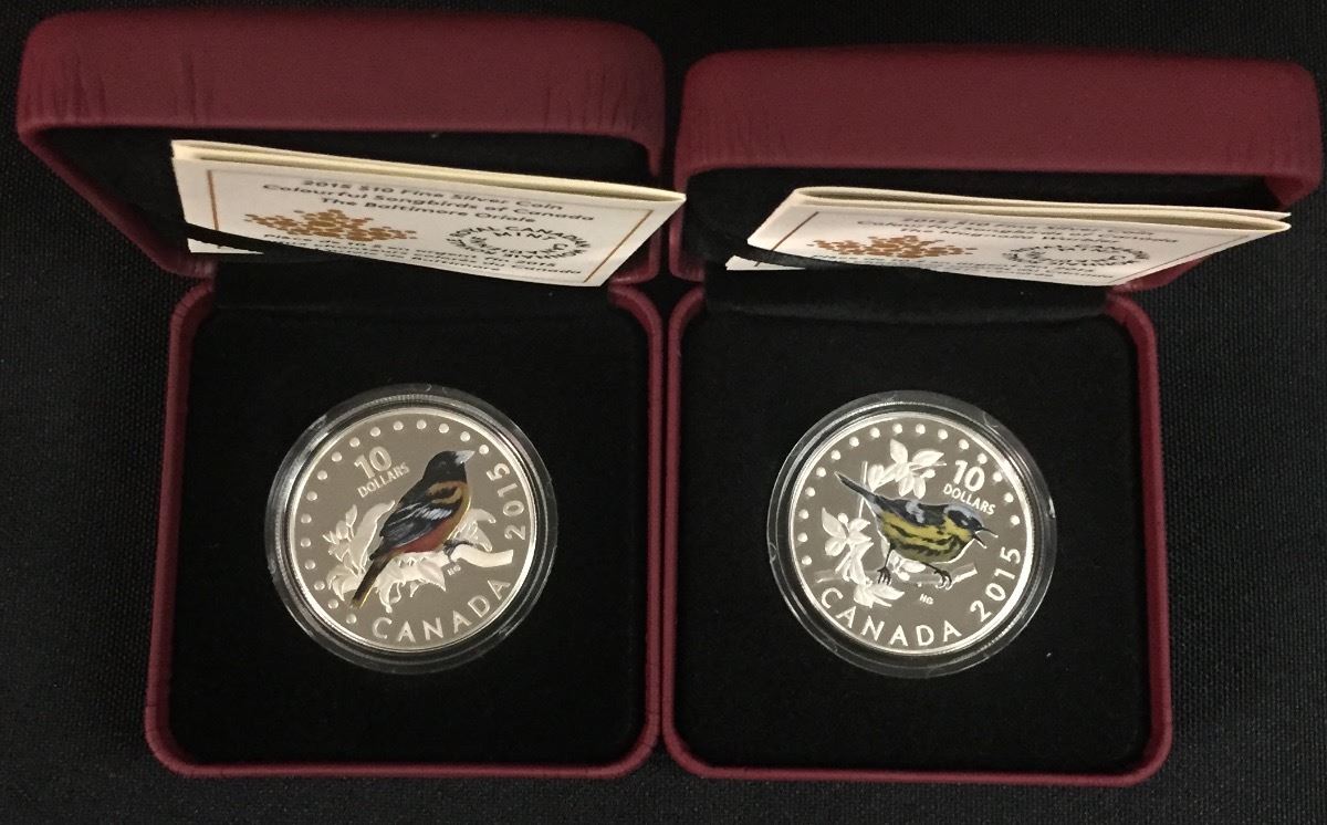 2x .9999 Fine Silver $10.00 Songbirds of Canada Coins - 'Warbler' and 'Oriole'. 2 Pcs.