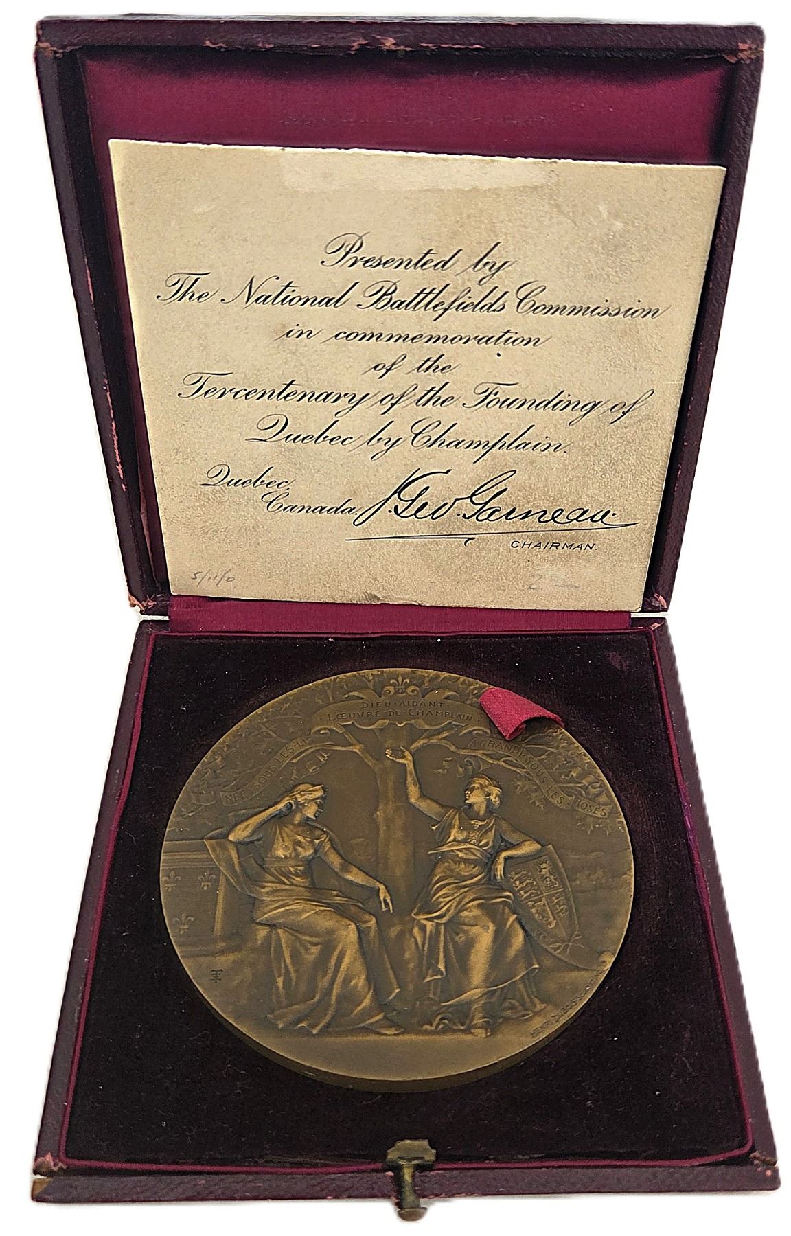 76.3mm, 160.6g, Signed Henri DuBois Sculp. Et Inc., Original Matte surfaces of yellow-gold with only a few tiny marks. Original presentation card signed by Geo. Gaineau is included. Housed in its original burgundy box with burgundy velvet and burgundy satin interior. UNC. 1pc. From the Geoffrey Bell Collection.