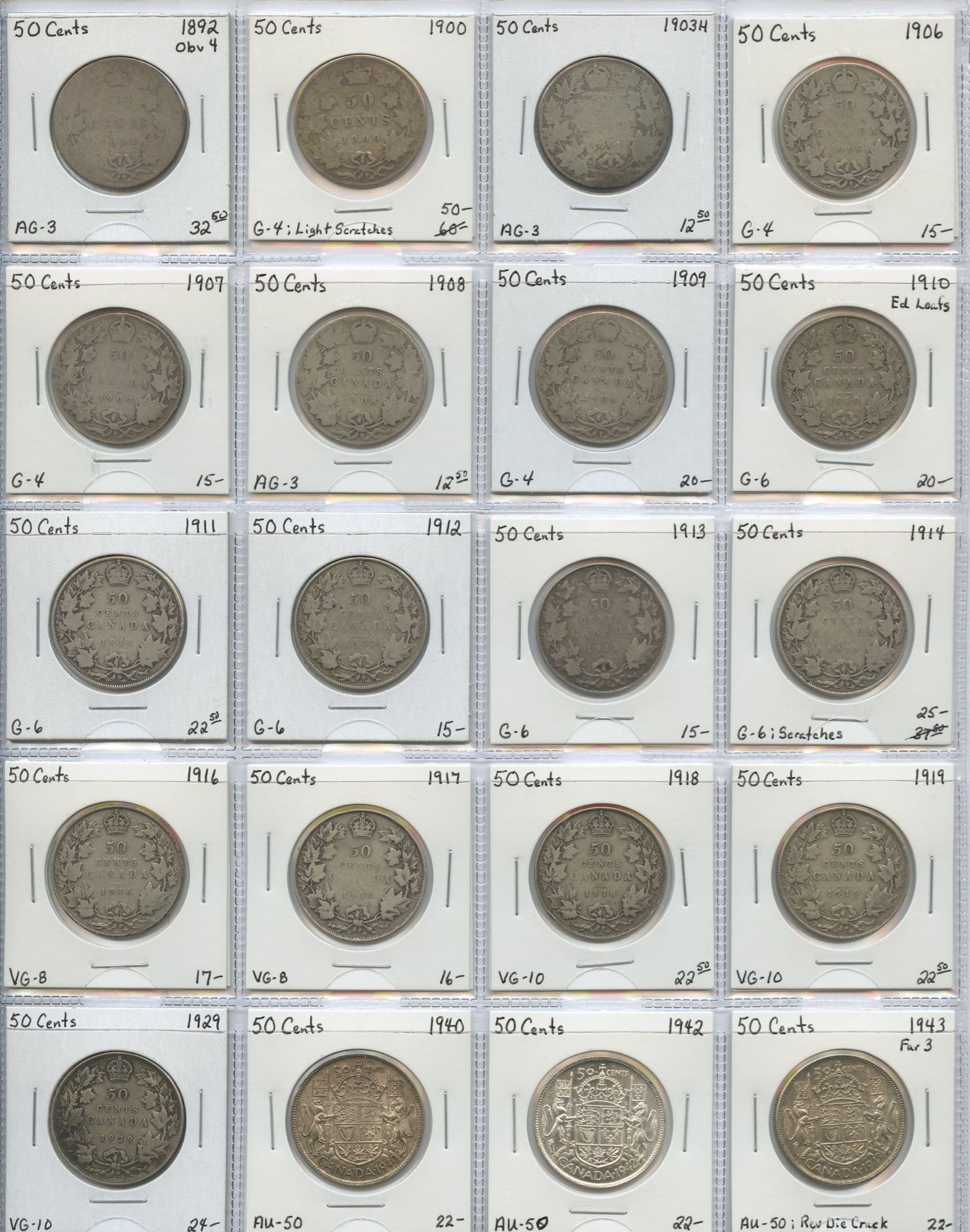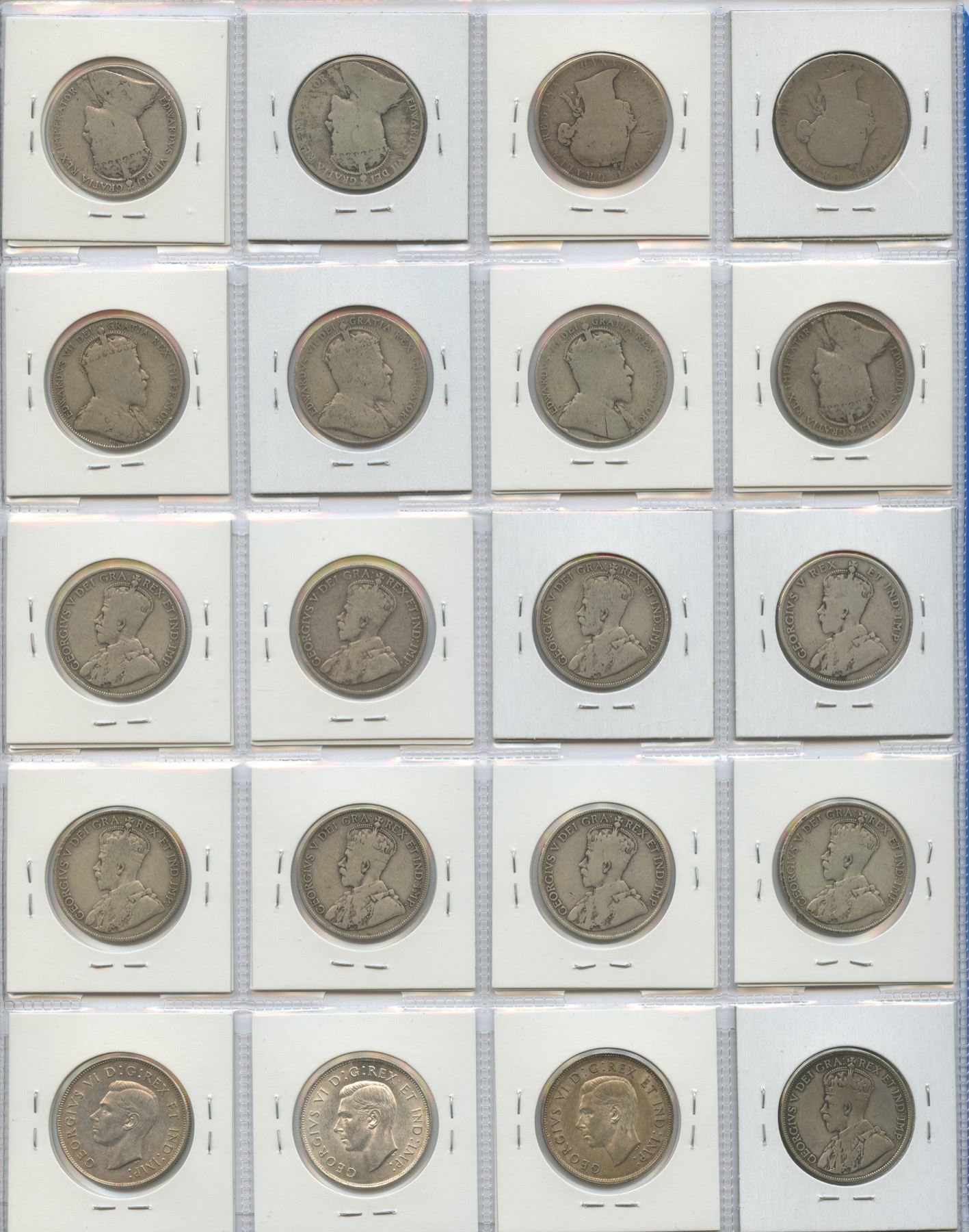 1892 Obverse 4, 1900 with light scratches, 1903H, 1906, 1907, 1908, 1909, 1910 Edwardian Leaves, 1911, 1912, 1913, 1914 with scratches, 1916, 1917, 1918, 1919, 1929, 1940, 1942, 1943 Far 3 with reverse die crack. 20 Pcs.