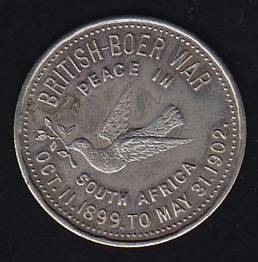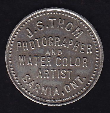 Advertising Token. J.S. Thom, Sarnia, ON, British Boer War, white metal, UNC, Cranston Novelty Co. Dove of Peace.