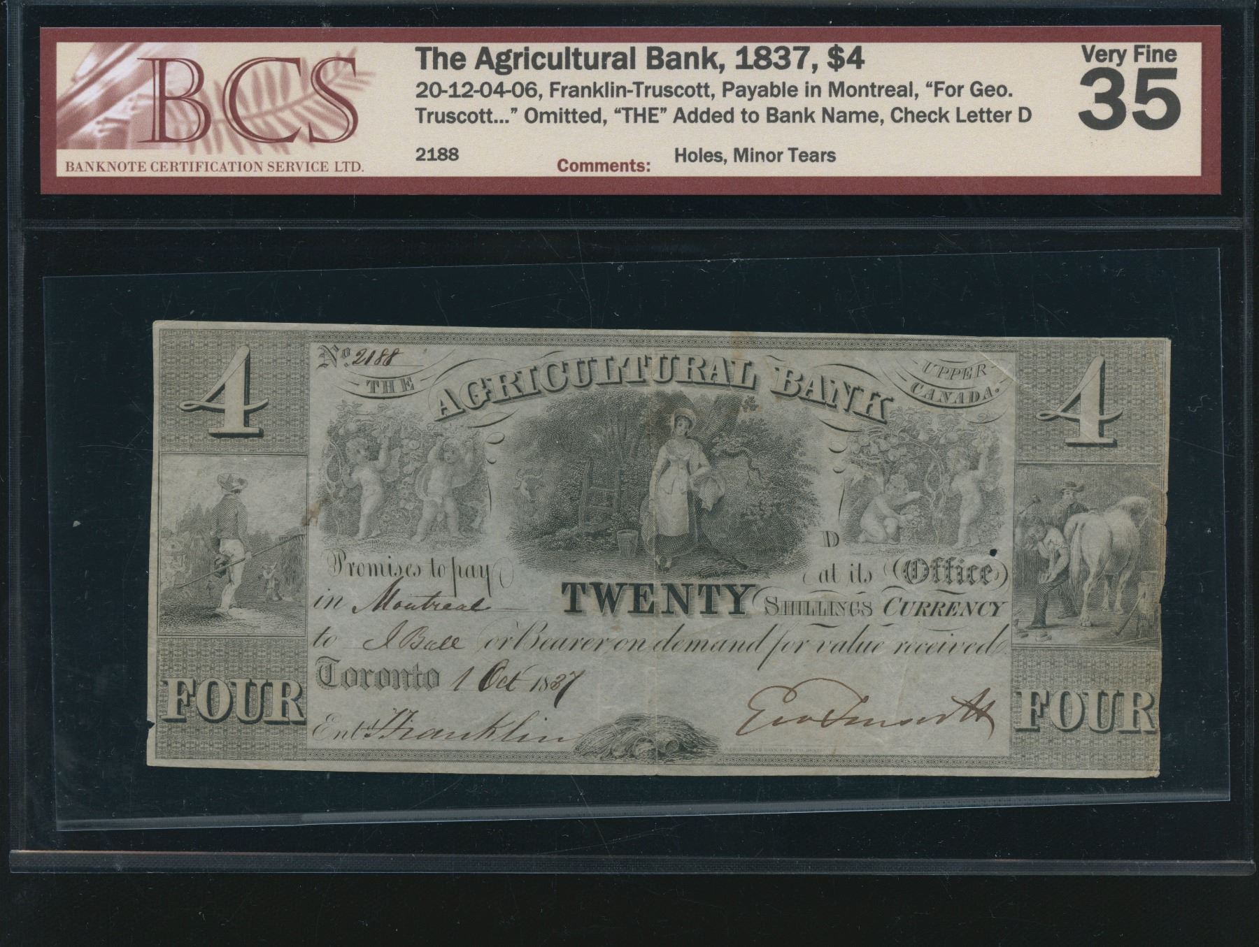 CH 20-12-04-06. BCS Very Fine 35, holes, minor tears. S/N:2188/D.