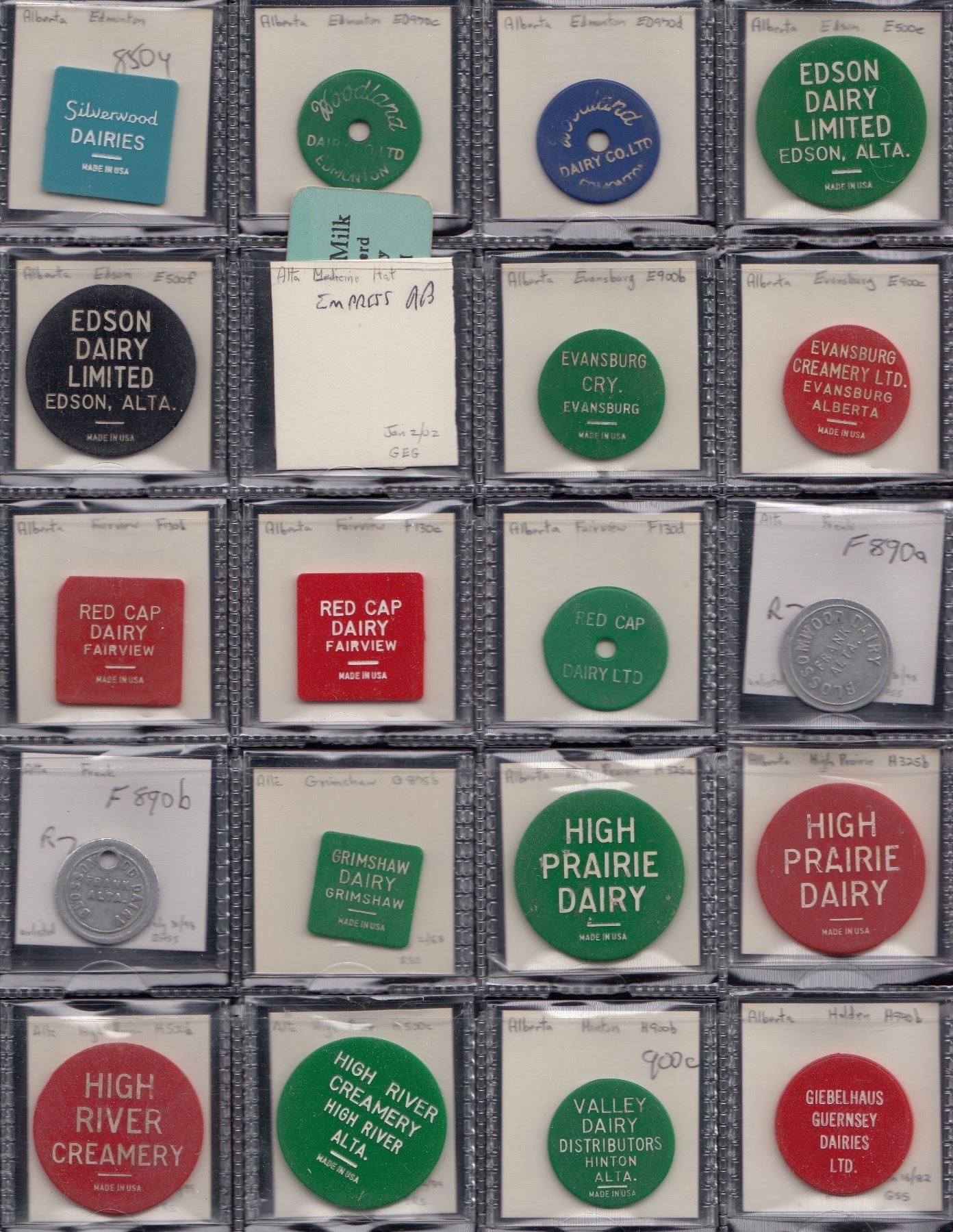 Barhead, Barhead Dairy B190c, d; Bashaw, Bashaw Creamery B270a; Bassano, Bassano Creamery B360a, b; Beiseker, Frosted B490c (2), d (3); Bellevue, Pass Dairy B565d, e, f, g, h; Blairmore, Crystal B675a, (al); Bowden, B760b, c; Brant, Fletcher’s B870c; Calgary, Alpha Jersey CA0720d; Alpha Milk CA0780b, c, e, g, k, l, m, p, q, r, s, t, u; Co-Op Milk CA2700d, f, g, h, (all al.); Crystal CA2880a, b, d, e, g, i, m; Model CA5800f worn, g, h, j; Palm CA6500g, h, k, l, m, o, p, q ,r, t, y, ad, ag, ah, ak; Union Milk CA9200h, i, m, n, o, r, s, t; A9201a, b, c, f, g, h, k; Camrose, Ness’ C120a, b, c, d (3), e, f; Canmore, Bow Valley C240b; Canmore Dairy C260b; Canmore Dairy Ltd. C275c; Castor, Creamery C490f, h; Claresholm, Dairy C650a worn, c, e. i; Consort, Milk C920b, c, d, e; Didsbury, Alpha Jersey D320b; Alpha Milk D330b, c; Didsbury Dairy D365a, c, d; Drumheller, Browns D710d; City D730b; Edmonton, East End Dairy ED185b (al.); Jasper ED420b, d. g; Jasper Ltd. ED421b; NADP, D640b, s, v, w, an; Palm ED700a, c, f, g, h, i, m, n, w (2); Silverwood Dairies Ltd. ED850c, d, e, f, g, h, j, k, m, o, q, s, t, y; Woodland ED970c, d; Edson, Dairy E500e, f; Empress, Milton Leach, One Pint, paper, green; Evansburg, E900b, c; Fairview, Red Cap F130b, c, d; Frank, Blossomwood F890a, b (both al.); Grimshaw, Grimshaw Dairy G875b; High Prairie, Dairy H325a,b; High River, Creamery H500b, c; Hinton, Valley H900c; Holden, Giebelhaus H940b; Innisfail, Independent I-325a,b, c, d, e; Jasper, Park J40d; Lac La Biche, Creamery L20a; Lethbridge, Palm L520a, c, e, f; Purity L560d, j, k, n, o, p, q, r, s1, t, u, v, w, x, y; McLennan, Dairy M240b; Medicine Hat, Alpha M300a, b; Ayshire M340b; Pincher Creek, Mountain View P425a, b (both al.), c; Sunalta P500b; Ponoka, Central Alberta Dairy Pool Branch 18 P730a, b (3); CADP, P 730c; Provost, Dairy P950b, c, d; Raymond, Hancock R40b; Red Deer, Alpha Jersey R150j, k, l, o, q, r, s, u; Alpha Milk R170f, j, m, n, t; Central R250h, l (worn), q (worn), y, ae (2); Union R680c, d; Whitehills R700d; Redwater, Sparkle R720b, c; Rycroft, Central Peace Dairy R960d, Central Peace Dairies R962d, e; Sangudo, Astleford’s S130b; K. Miller S170b; Sangudo Creamery S210b, d, e; Strathmore, D. Walstra S800b; Sylvan Lake, Creamery S950b (2), c (2), d; Three Hills, Hickok T50c, d (2); Valleyview, Dairy V20b; Wainwright, Dairy W90a, b, c; Whitecourt, Valley W860b; Last, see Mav.15b, Spruce Grove Dairy Farm, this token g/f 1 qt., A-O-25. VG - Unc, generally Fine-VF. 251 Pcs.