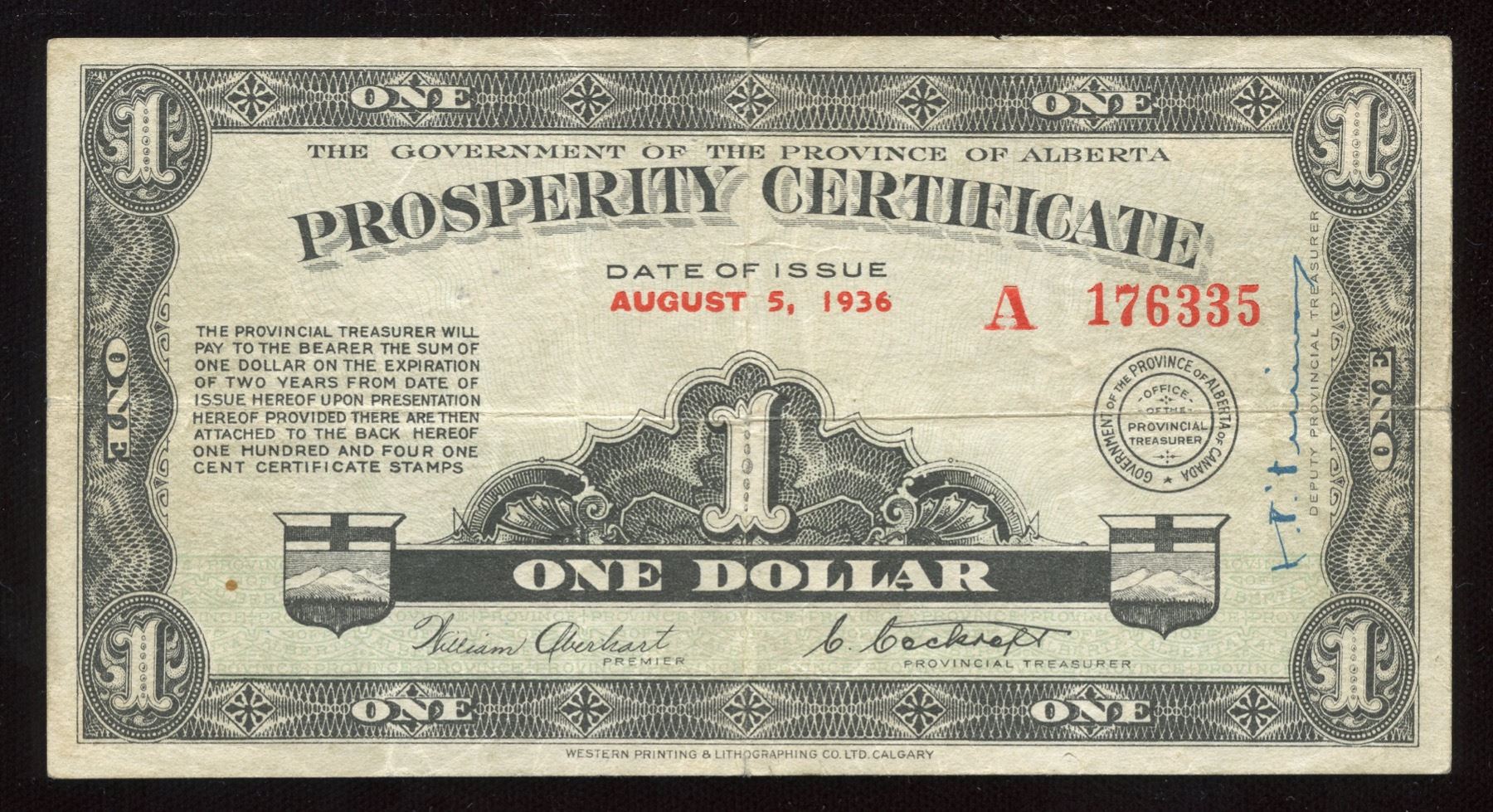 CH-A1. Fine+ with three stamps. S/N:A176335.