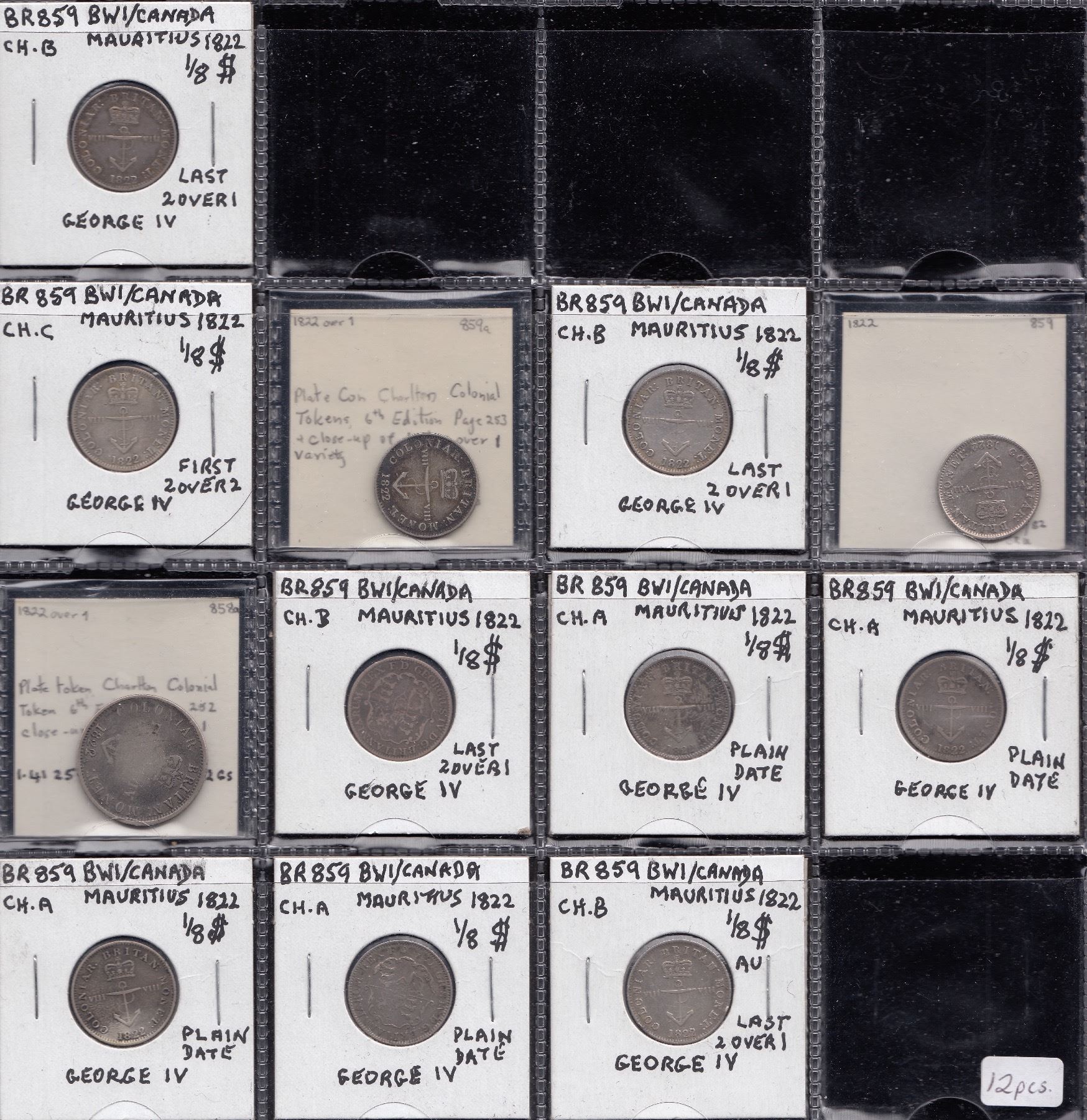 Br. 859, Anchor Money, 1/8 dollar, silver, 1822 plain dates, overdates 2 over 1, 12 Pcs. VG – VF, most VF.