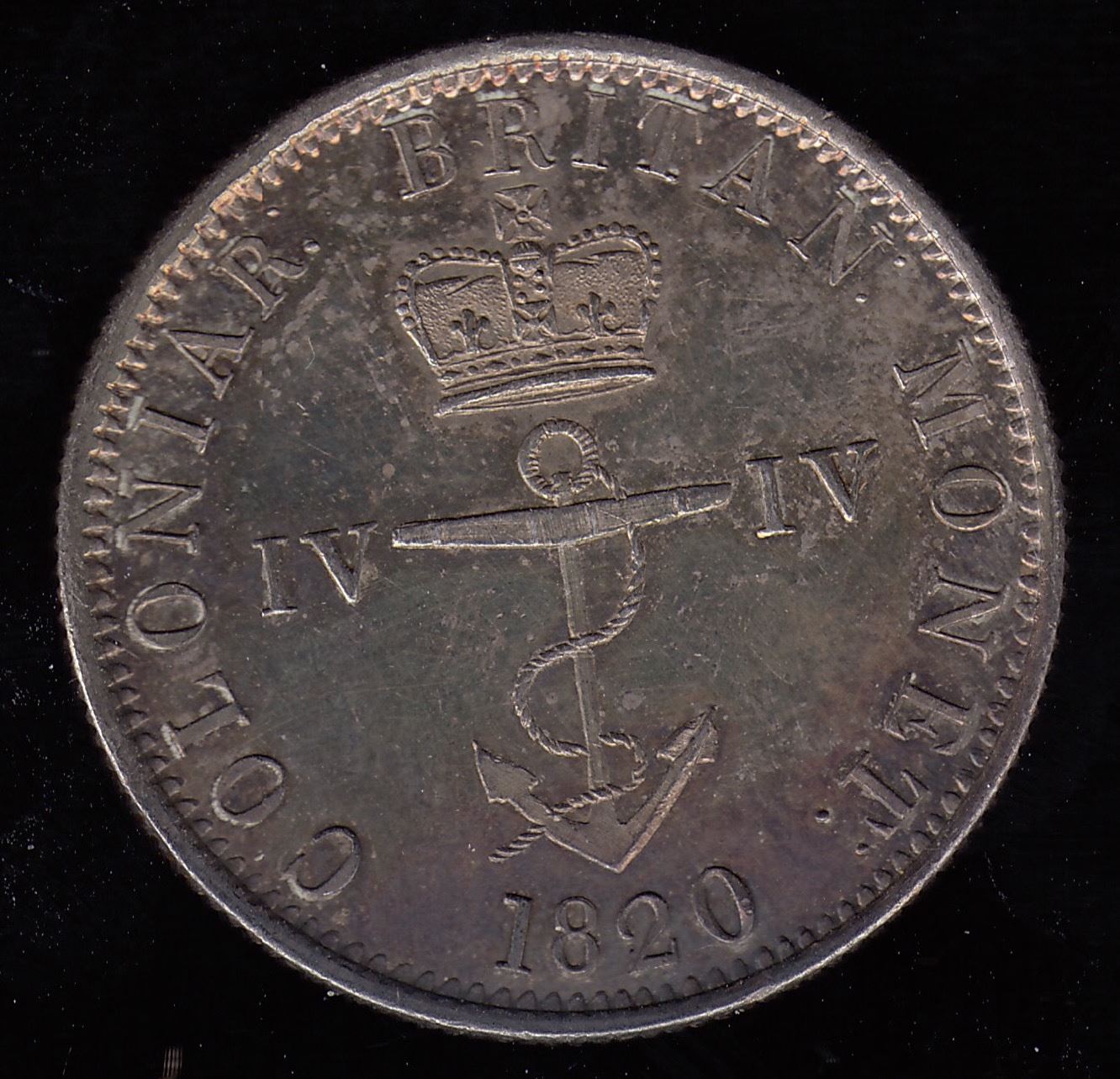 Br. 858, Anchor Money, ¼ dollar, 1820, silver, AU and nicely toned.