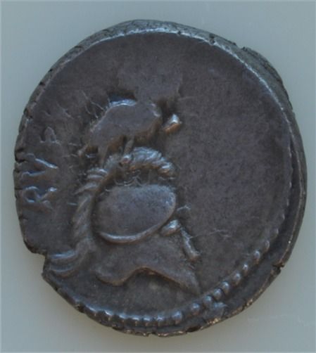 Mn. Cordius Rufus 46 BC. AR Denarius 3.99gr. Owl perched on Corinthian helmet. Rev. Aegis with Medusa head. S.441. CRR.978. Weak areas, toned aVF.
