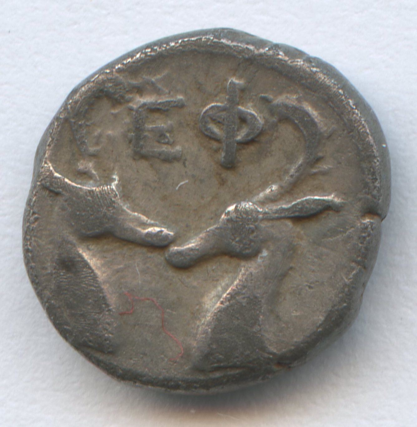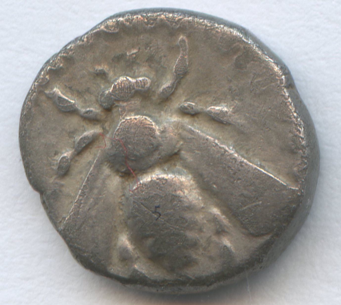 (10mm, 1.04g) Bee from top perspective. Rev: Confronted heads of stags. Reference: SNG Kayhan 194ff; good VF, nice bee design.