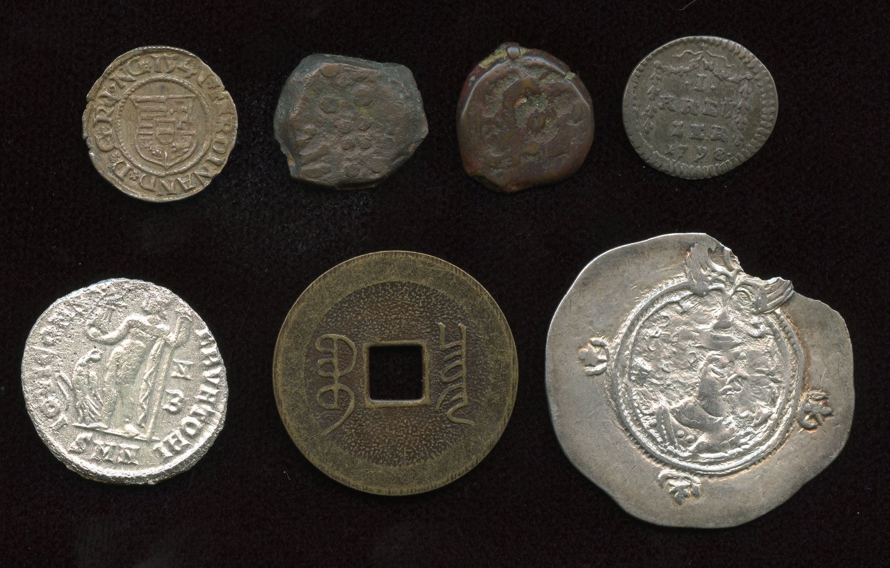 Judea, AE Prutah (3 coins); NGC XF, F, imitation || Hungary, Ferdinand I, AR Denar 1541; gVF || Germany - Nuremberg, Billon 1 Kreuzer 1798; gVF || Late Sassanian Drachm; gVF, flan chipped || Imitation coins - 1) China 2) Roman follis. 8 Pcs.