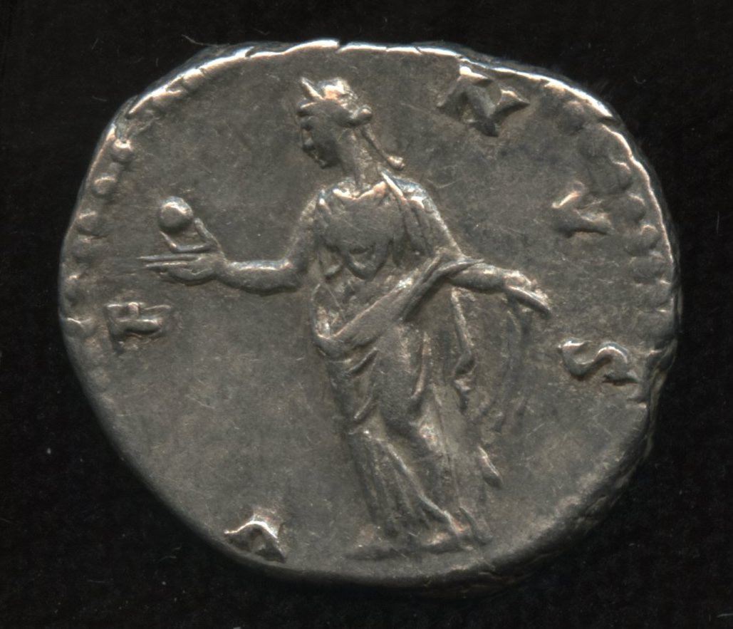 (18mm, 3.27g) Draped bust r. Rev: Venus standing l. holding an apple and leaning on rudder. RIC 515a; gVF (ex. Calgary Coin).