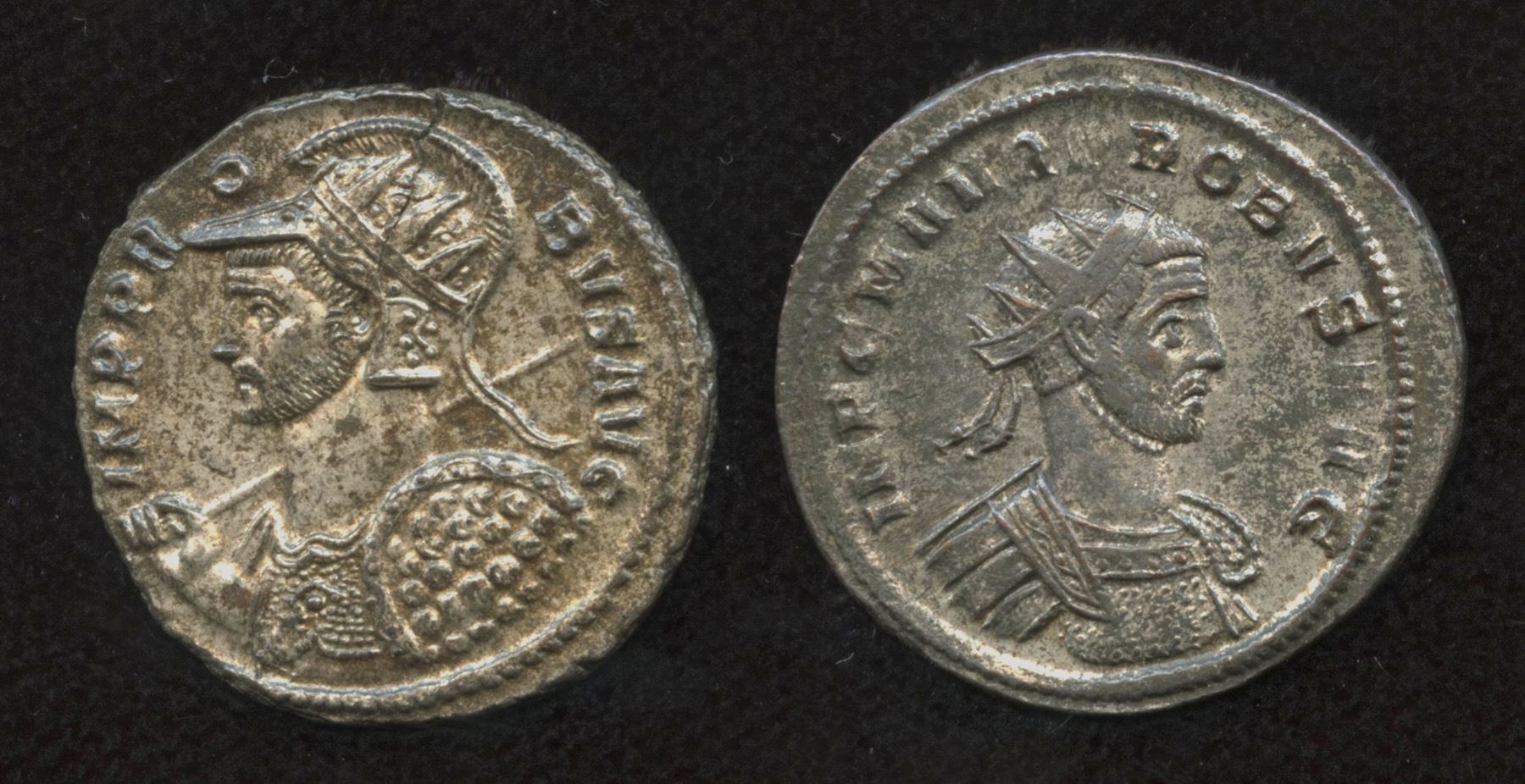 Includes: AE Antoninianus, ADVENT AVG, Rome Mint, EF much silvering remaining. AE Antoninianus, VIRTVS PROBI, EF, almost complete silvering. 2 Pcs.