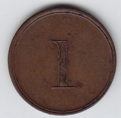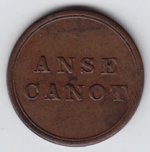 Anse Canot 1 (cart loads) An excellent companion to the above tokens. Copper, 20mm, 3.15 gms. Very Fine and very rare.