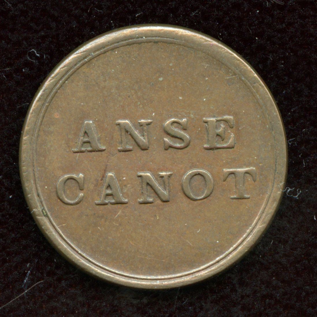 Anse Canot 1 (cart loads) An excellent companion to the above tokens. Copper, 20mm, 3.15 gms. Very Fine and very rare.
