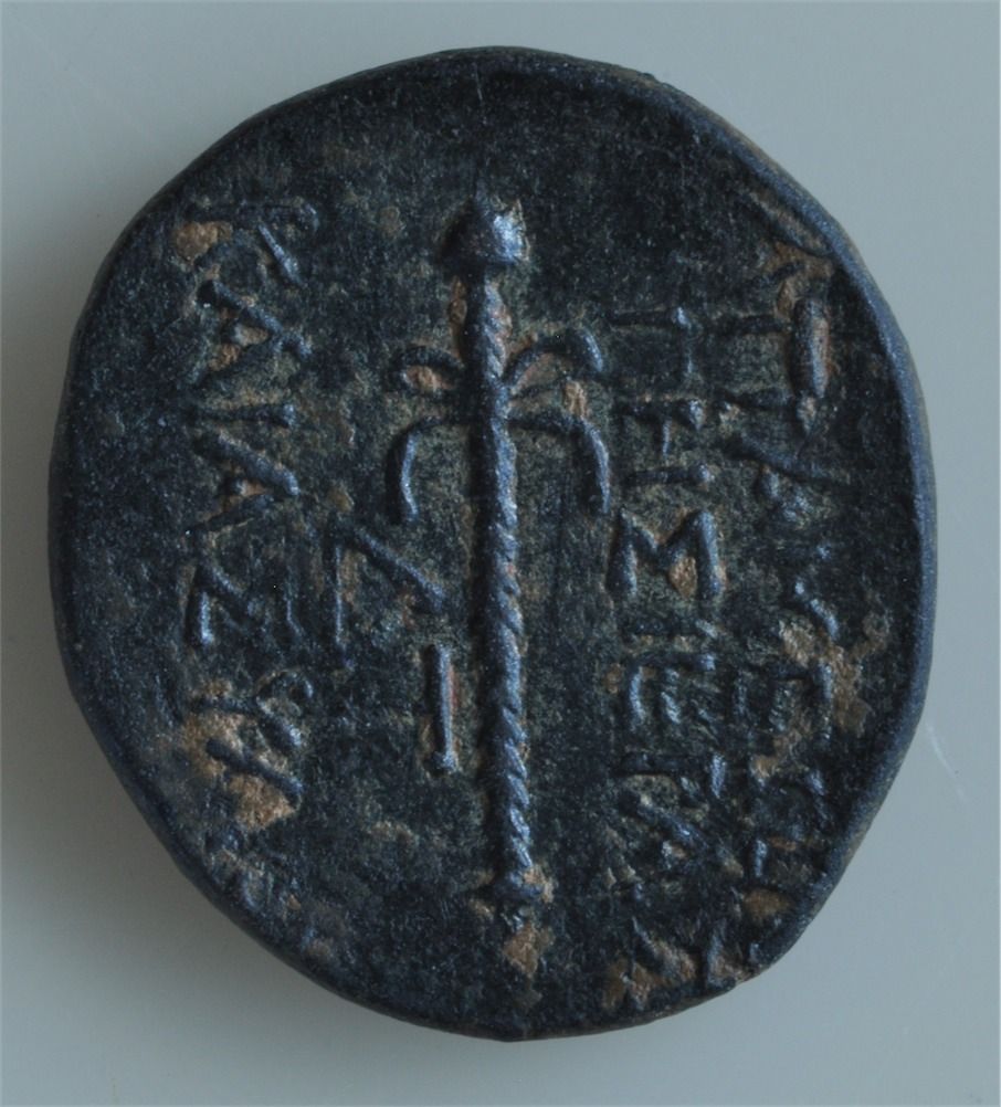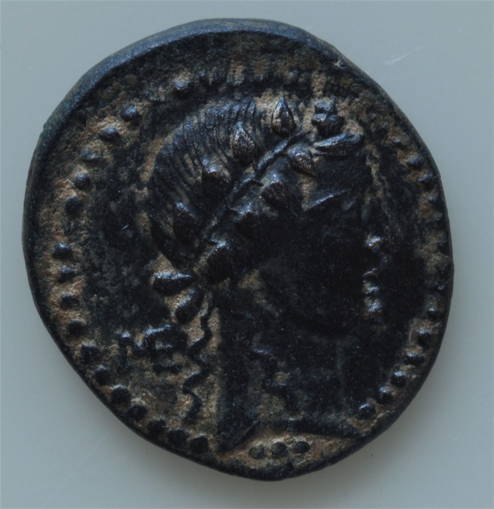 Augustus (27 BC - 14 AD) - AE-20 Apamea, Syria 9-8 BC. Obv: Bare head of Dionysus with ivy wreath r. Rev: Thyrsus (year 304) 7.0 grams RPC 4353 EF.