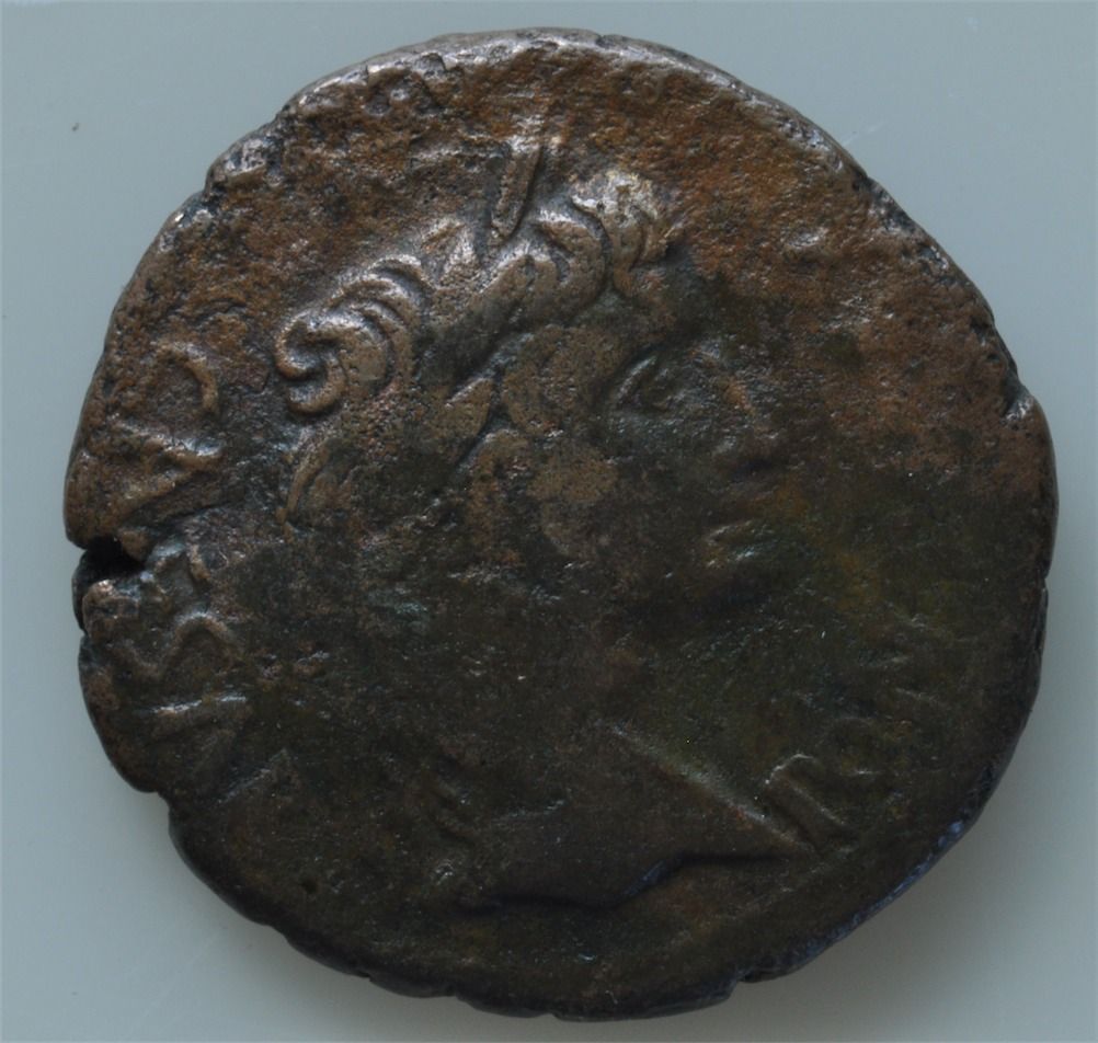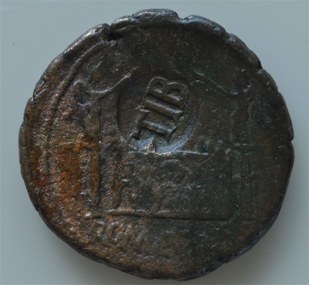 Augustus (27 BC - 14 AD) - AE-As Lugdunum, 10-6 BC Obv: Bare head with laurel wreath r., CAESAR PONT MAX Rev: Altar of Lugdunum ROM ET AVG. The reverse has the counter stamp of Tiberius 10.8 grams. RIC-230 S-1690. Ex:J. Hoare Auctions lot 65 Oct. 24, 1996 Fine.