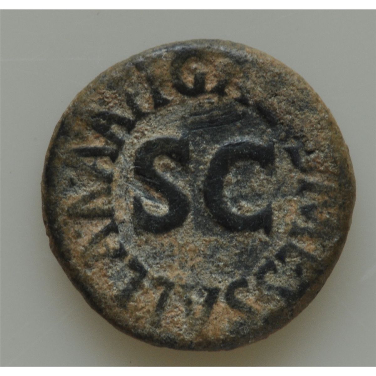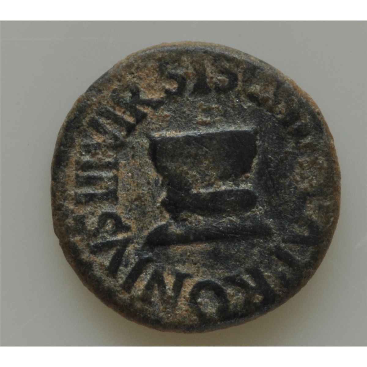 Augustus (27 BC - 14 AD) - AE-Quadrans Rome, 5 BC. Obv: altar surrounded SISENNA APRONIVS III VIR. Rev: S C in the centre surrounded by GALVS MESSALLA A A A F F. 2.8 GRAMS S-1700. VF.