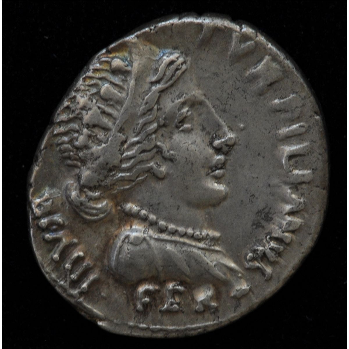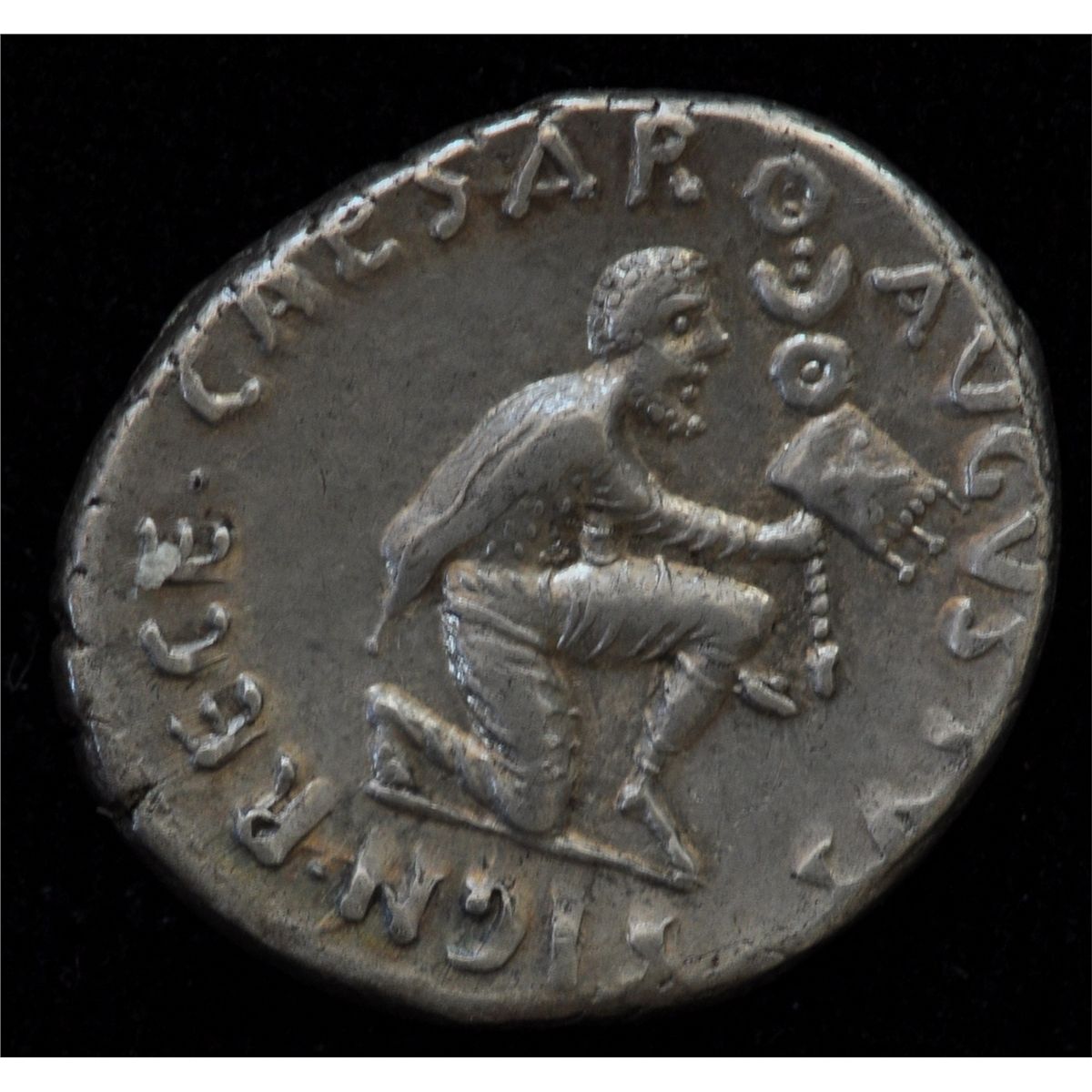 Augustus (27 BC - 14 AD) - AR-Denarius Rome 19 BC. Obv: Diad. and dr. bust of Feronia r., TVRPILIANVS III VIR FERON Rev: Parthian kneeling r., presenting Roman standard. The letter X on the vexillum. CAESAR AVGVSTVS SIGN RECE. 3.7 grams S-1603 Ex:Freeman and Sear MB3 Lot 323 Dec. 10, 1996. Toned EF.