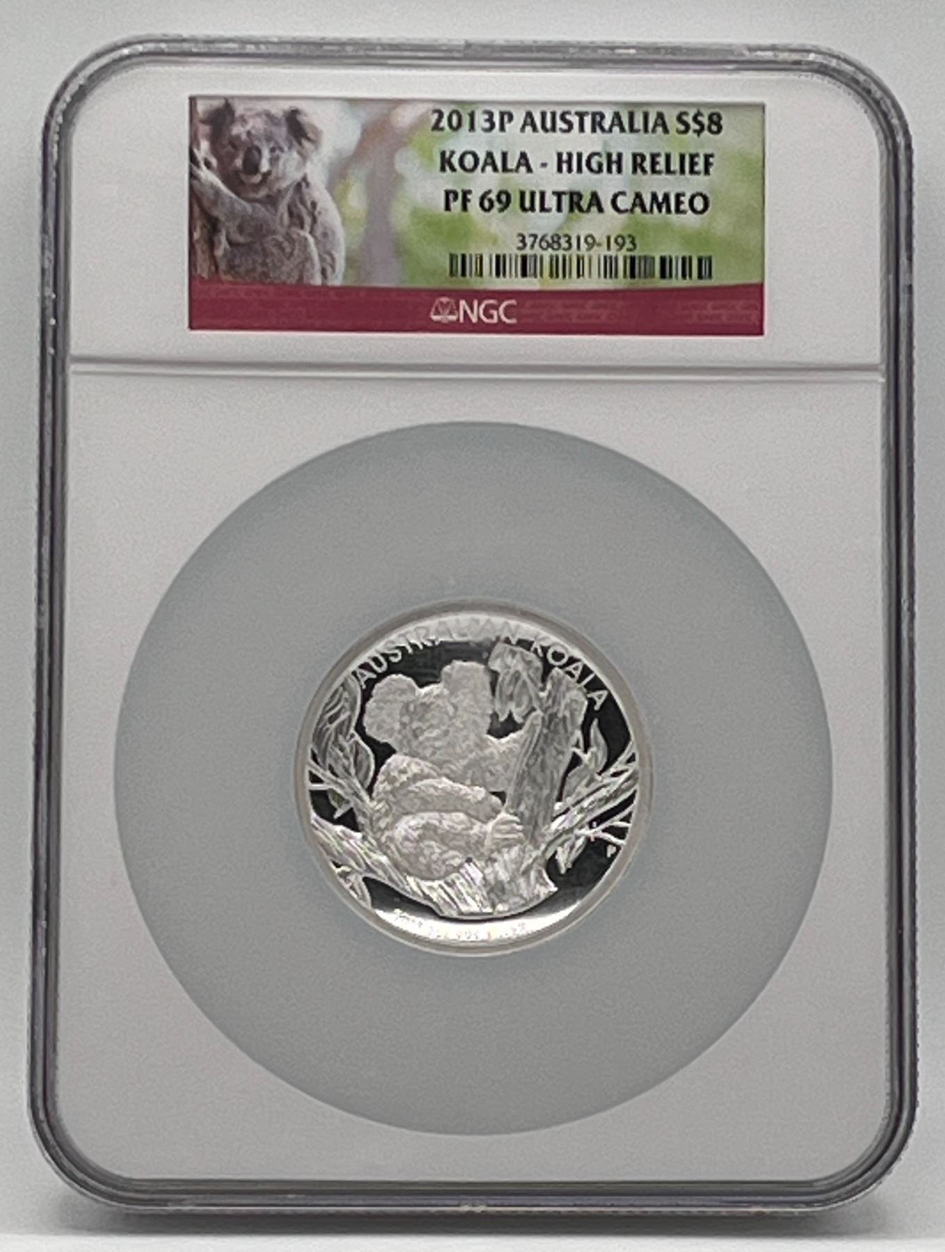 2013-P $8 Australia 5 oz Silver Koala High Relief Proof Coin NGC PF69 - Features the iconic Australian Koala design. 5 oz of 99.9% silver.