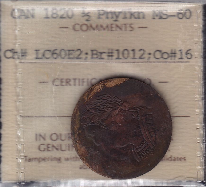 BR 1012 - CH LC-60E2, Co#16, 1820 Half Penny Token, ICCS MS-60.