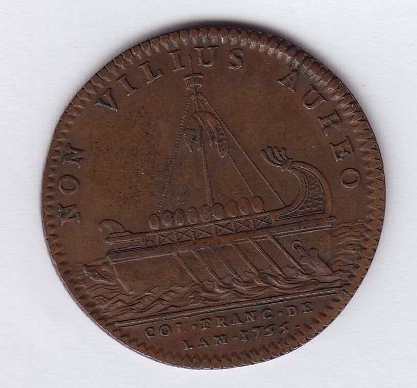 BR 515, Jeton, Argonauts, copper EF, small spot behind ribbon bow. Ex J.D. Ferguson.