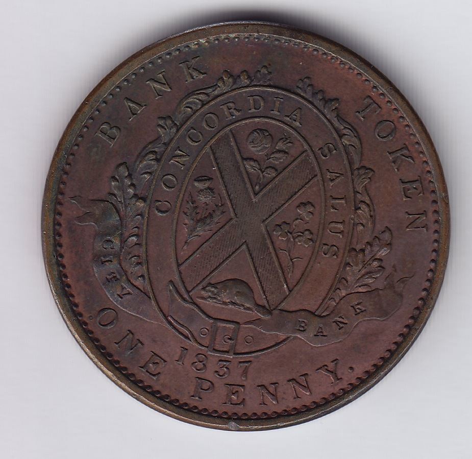 BR 521, City Bank Penny CH LC-9A3, small ground, period, straight reverse, Unc. Ex Don Flick.