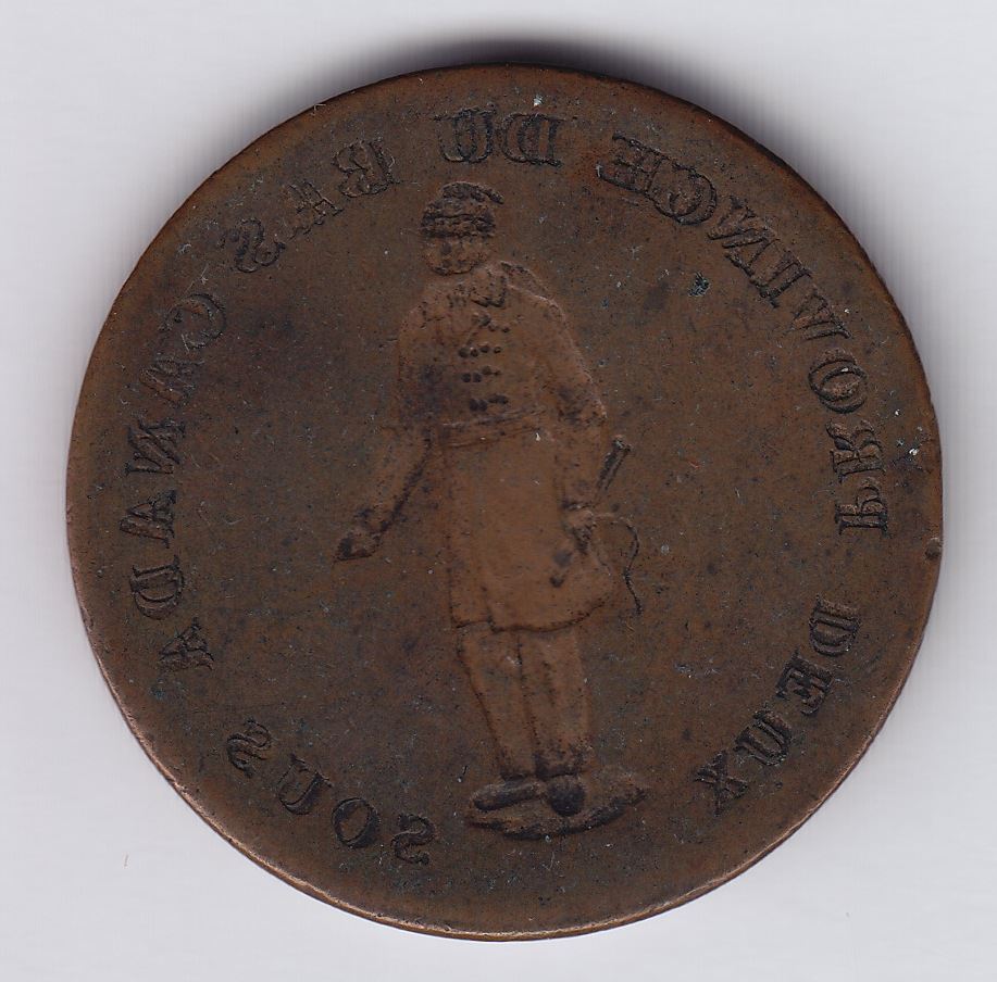 BR 521, obverse brockage of Habitant Penny Slightly double struck, large ground, without period. Scarce.