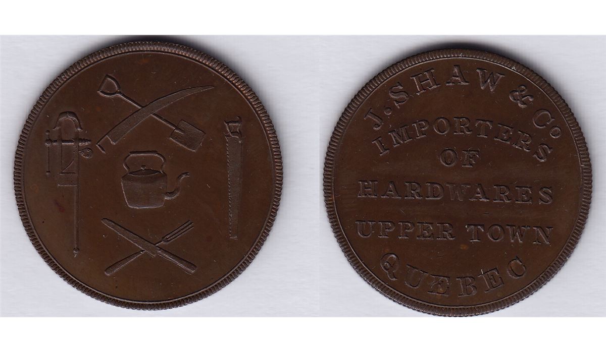 BR 565, CH LC-19A John Shaw’s token with weak W in HARDWARES. Unc. with remaining lustre.