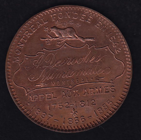 BR 573 - A. Desroches, Montreal, Cu, 12.56g, Unc (110 issued), die crack, scarce.