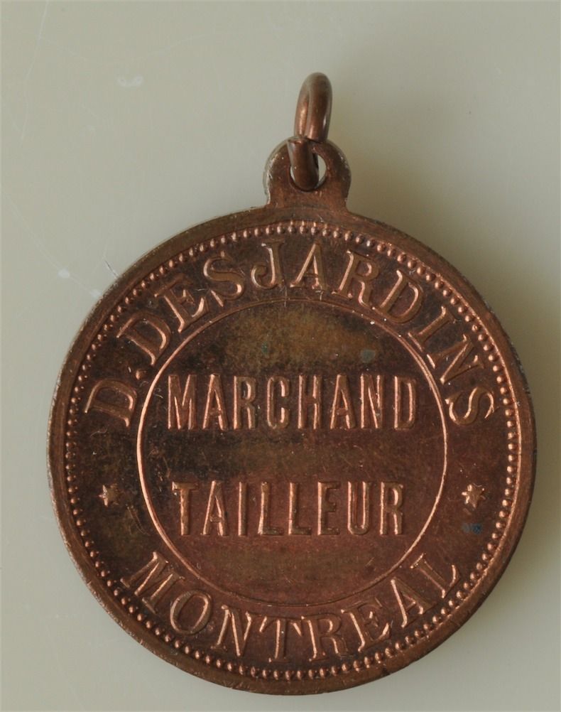 BR 575 - D. Desjardins, Montreal, Cu, 200 issued, 5.98g, Unc, looped at top, scarce.
