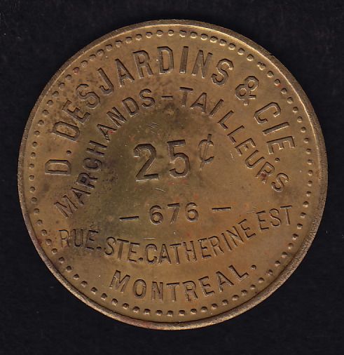 BR 575A - D. Desjardins & Cie, Montreal, Brass, 200 issued, 5.98g, Unc, scarce.