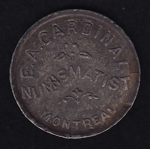 BR 577 - BR 577 Obv / BR 581 Rev, E.A. Cardinal, Montreal (100 issued), Brass, 7.09g, rare.