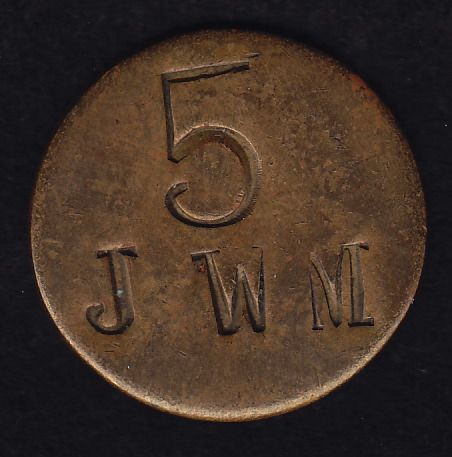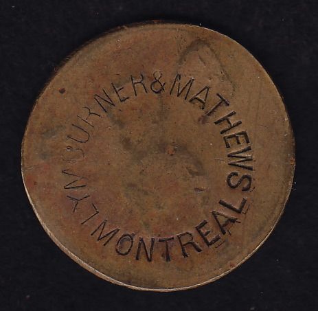 BR 579B - Lymburner & Mathew, Montreal, Rev 5J, WM, Brass, 5.3g, 25.3mm, VF.