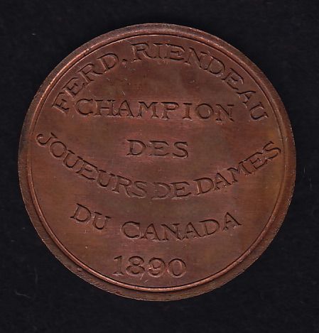 BR 587A - Checkers Fend. Riendeau Montreal. 1890, Cu, 4.67g, Unc.