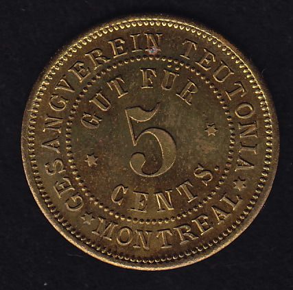 BR 589 - German Club, Gesangverein Teutonia, Montreal, Brass, 3.31g, Unc (1000 issued).