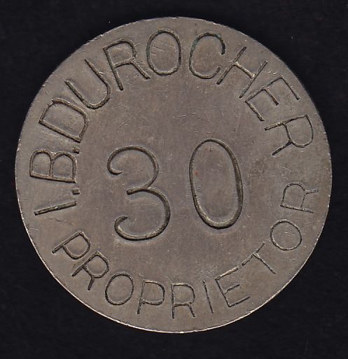 BR 620A - I.B. Durocher, Richelieu Hotel 30 (round o), large letters, wm, 7.85g, Unc.