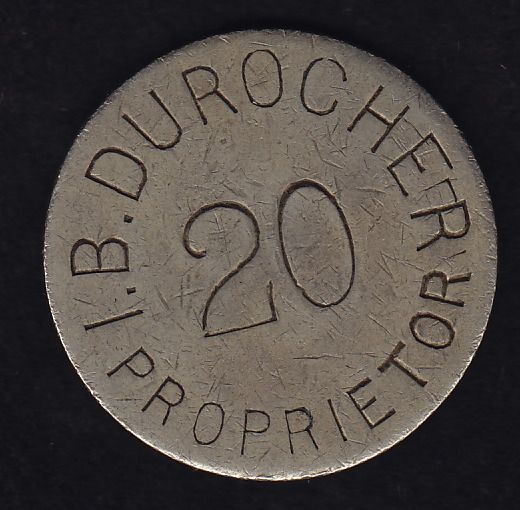 BR 620B - I.B. Durocher Richelieu Hotel 20 (oval o), small letters, wm, 8.24g, Unc.