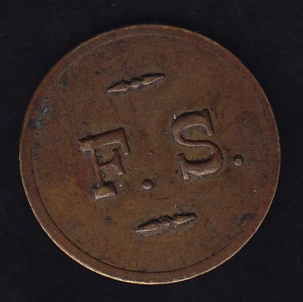 BR 624A - F.S. / 5¢ in Trade, (could be related to 624), Brass, 5.7g, VF.