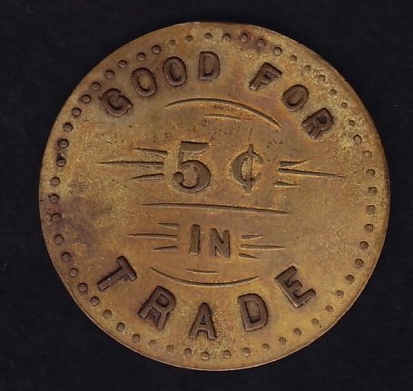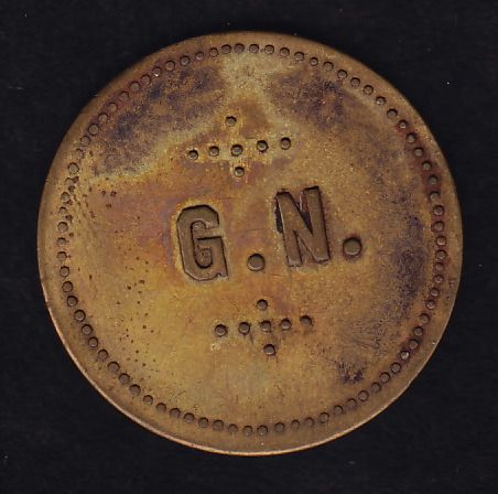 BR 626 - G.N. / 5¢ in Trade, Brass, 4.58g, 24.65mm, 1.4mm, 100 issued, EF.