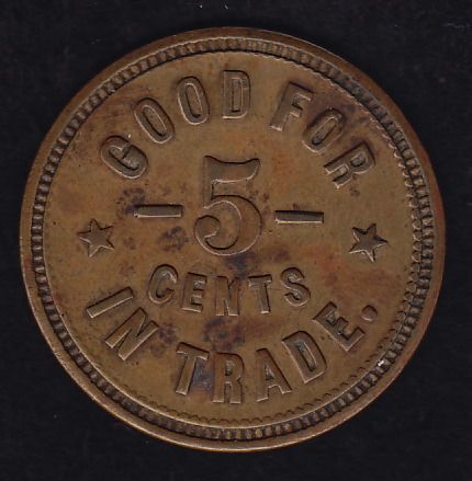 BR 627A - Mascotte G.N., 5¢, Brass, 3.98g, Missing a "t", Unc.