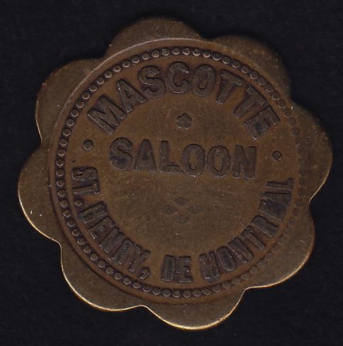 BR 627E - Mascotte Saloon, Montreal, 5¢, Scalloped, Brass, 5.38g, 28.5mm, 1.25mm, EF.