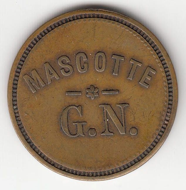 BR 627. Mascotte G.N., 5¢, Brass, 3.72g, 100 issued, EF.